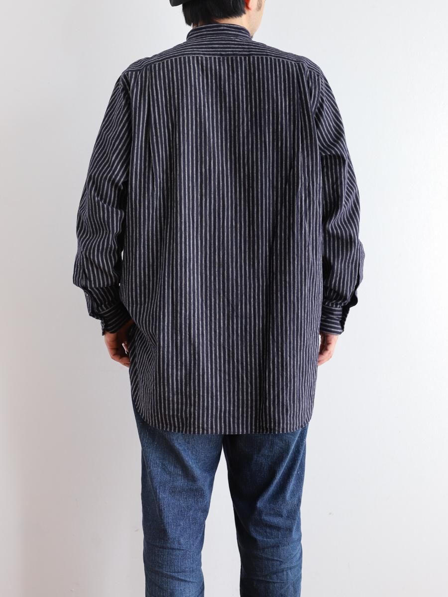 フレンチワークのヴィンテージ古着に見られるストライプ柄を再現しており、レトロで落ち着いた印象です。