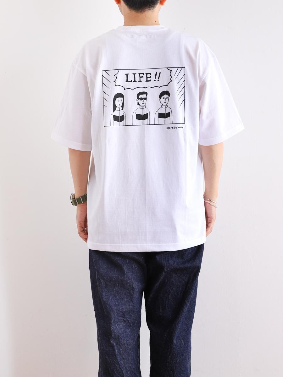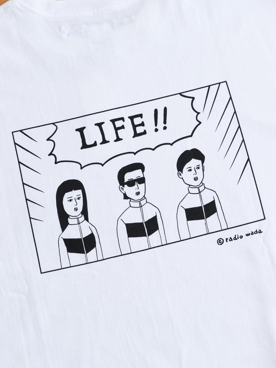 EELのプリントものの定番である『LIFE』をテーマに、和田ラヂオ氏らしいシュールなイラストとなっています。