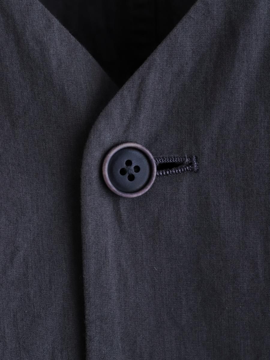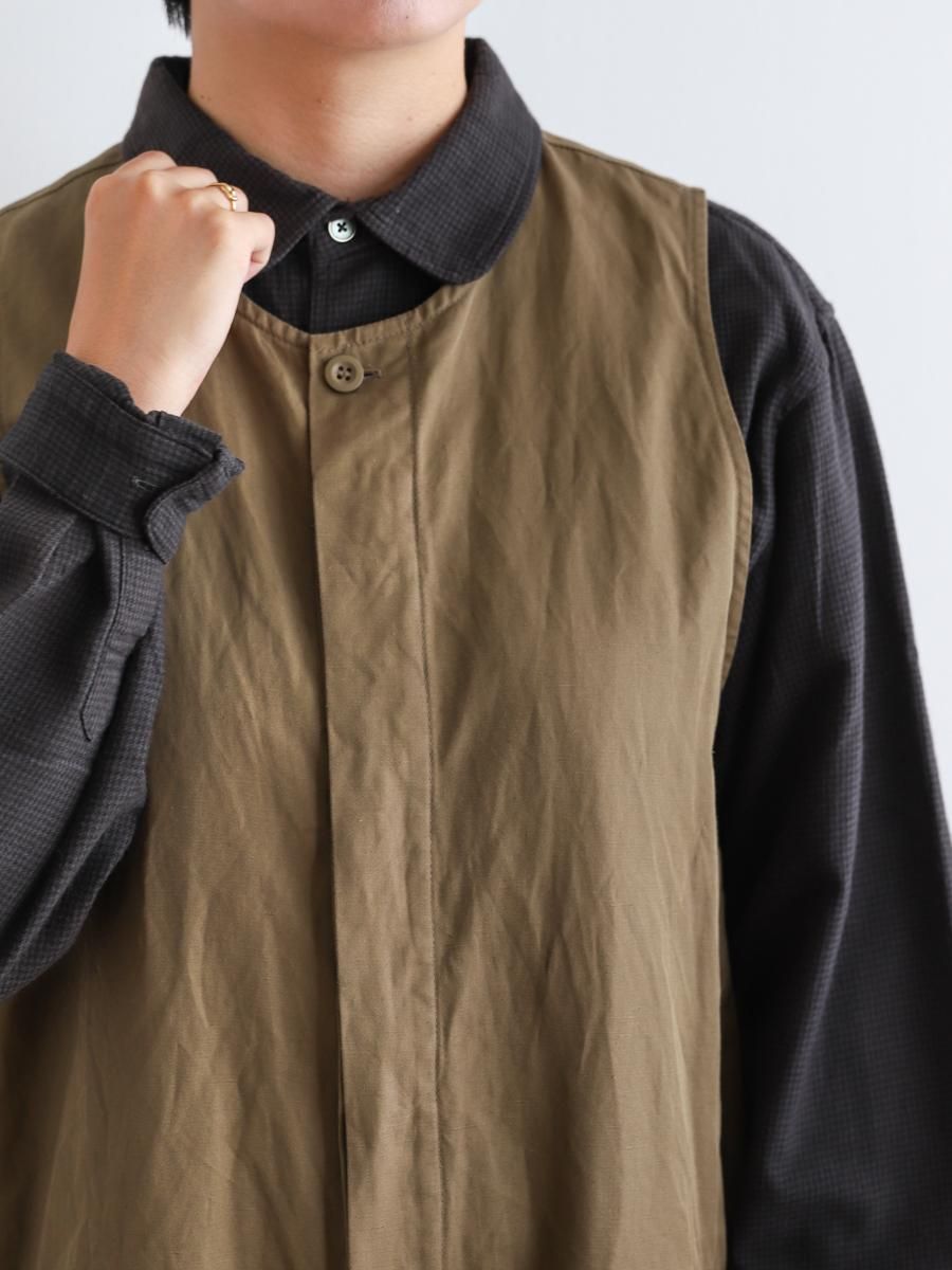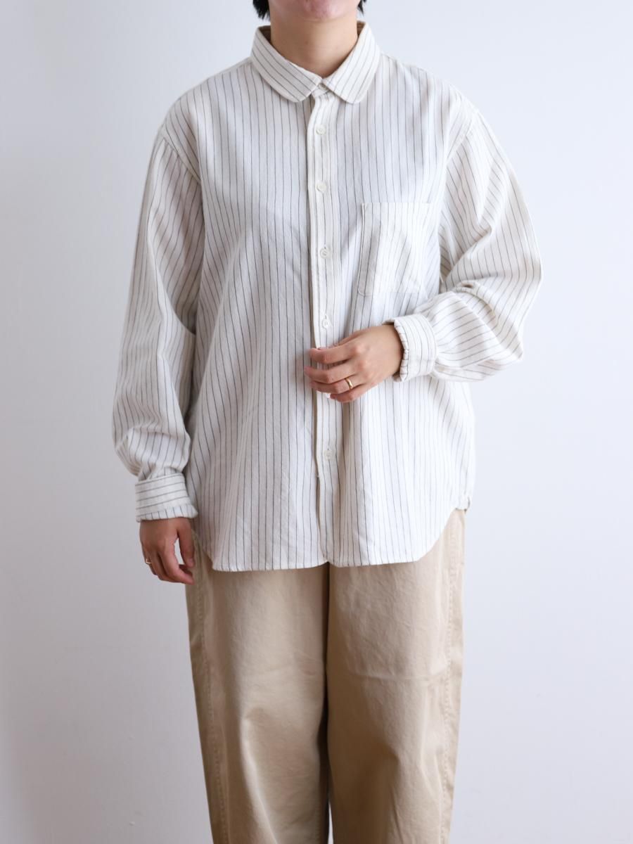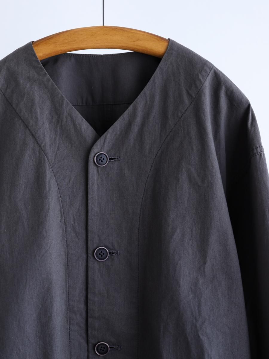 丸みを帯びた襟のデザインもポイントで、優しさのある天然素材と好相性。