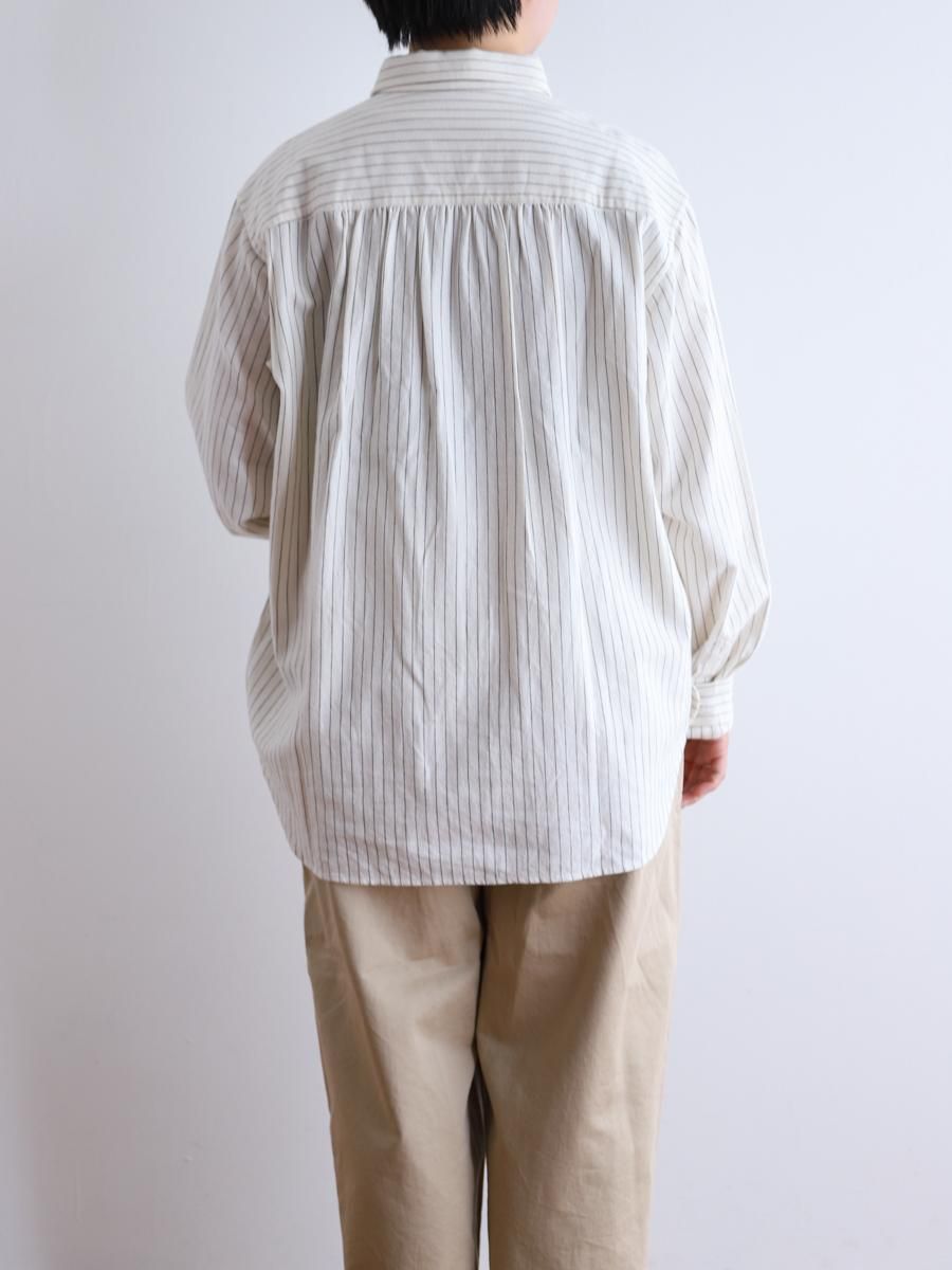 コットンウールの混紡糸を使用しています。細いストライプで派手過ぎずインナー使いもおすすめです。