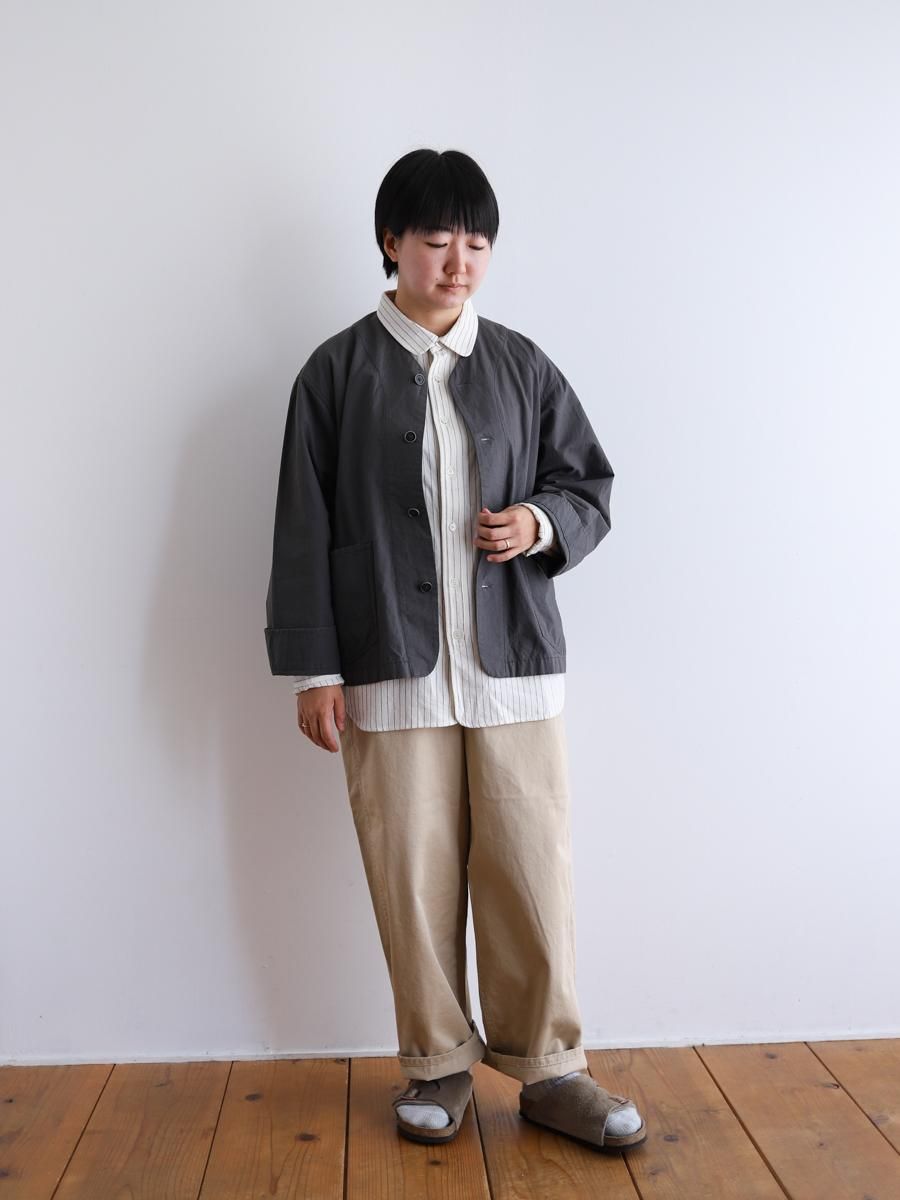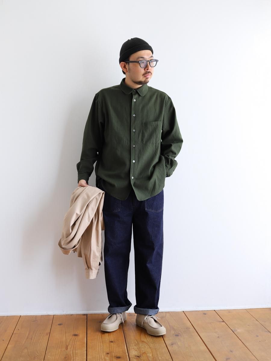 中肉の生地ですが、十分な洗い加工を施し通年着用できる柔らかな風合いに。