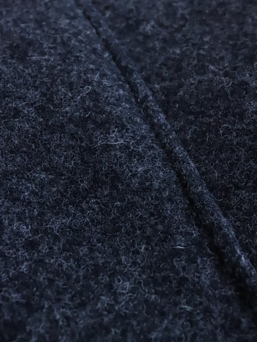 ウール素材特有のウォーム感のある風合いを最大限に残しながら、CORDURAに備わる摩耗強度の強さも併せ持った高機能な素材です。