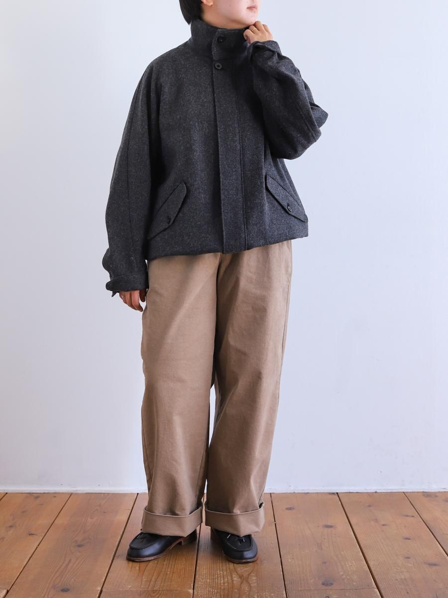 着丈は少し長めに設定し、全体的にゆとりをもたせたシルエットで、厚手のインナーの上からもストレスなく重ねていただけます。