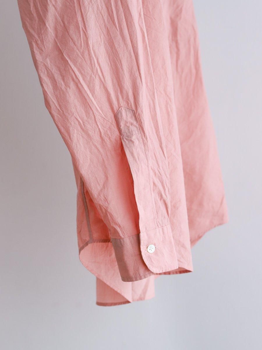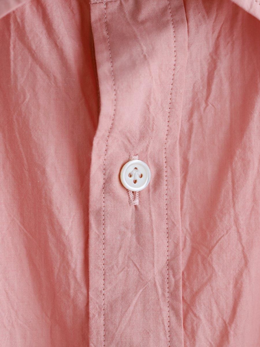非常に細かなピッチのステッチライン、貝ボタンを鳥足付けするなど、ドレスの要素を取り入れることでカジュアルシャツに上品さをプラスしています。