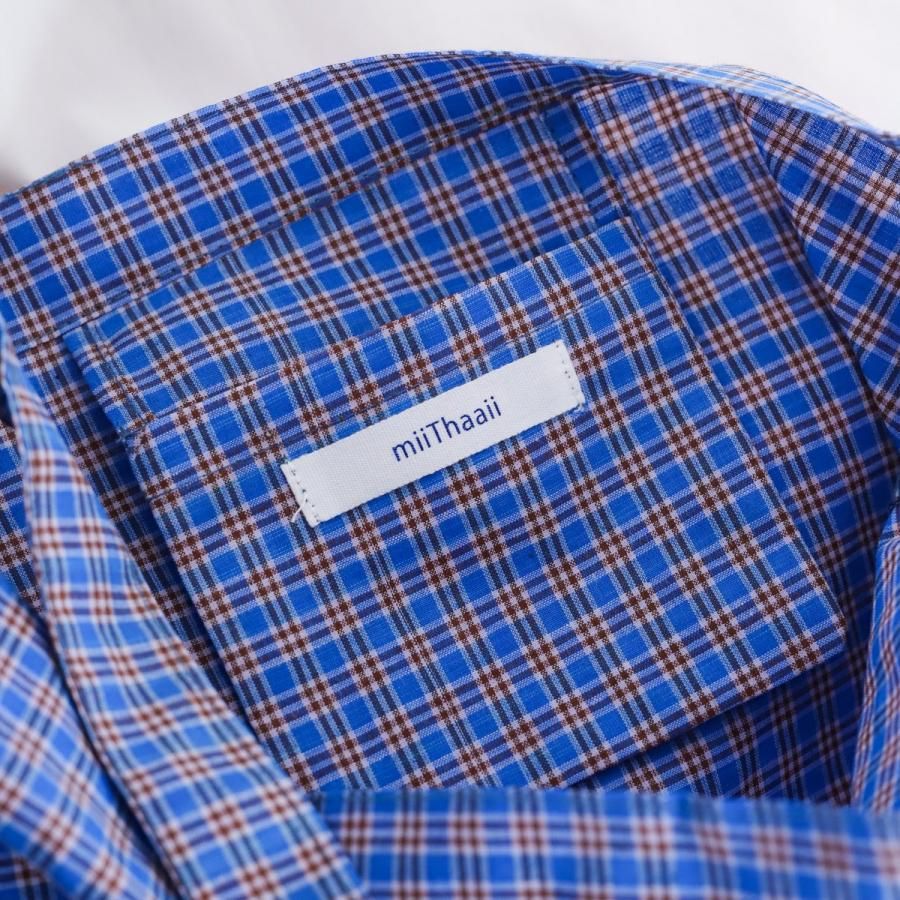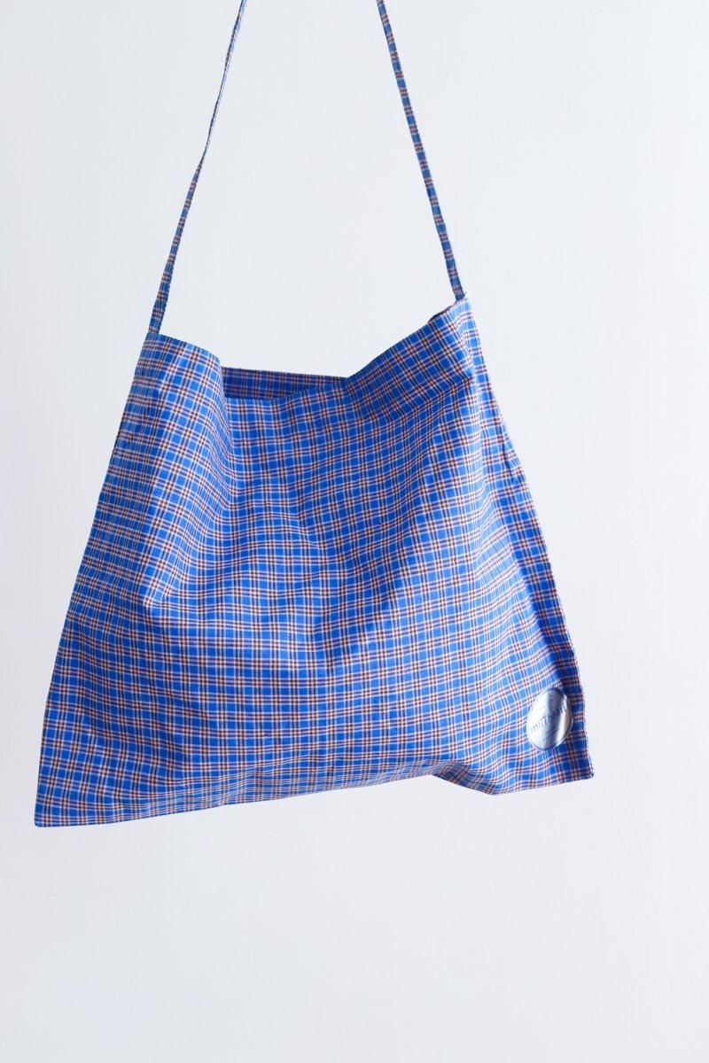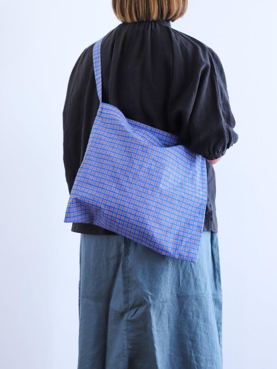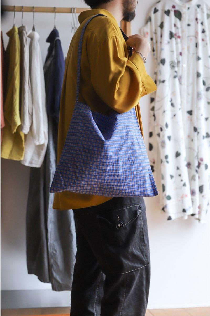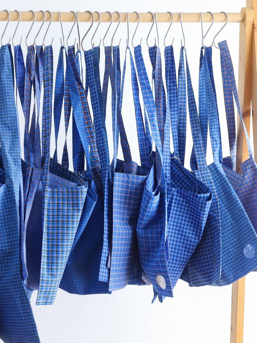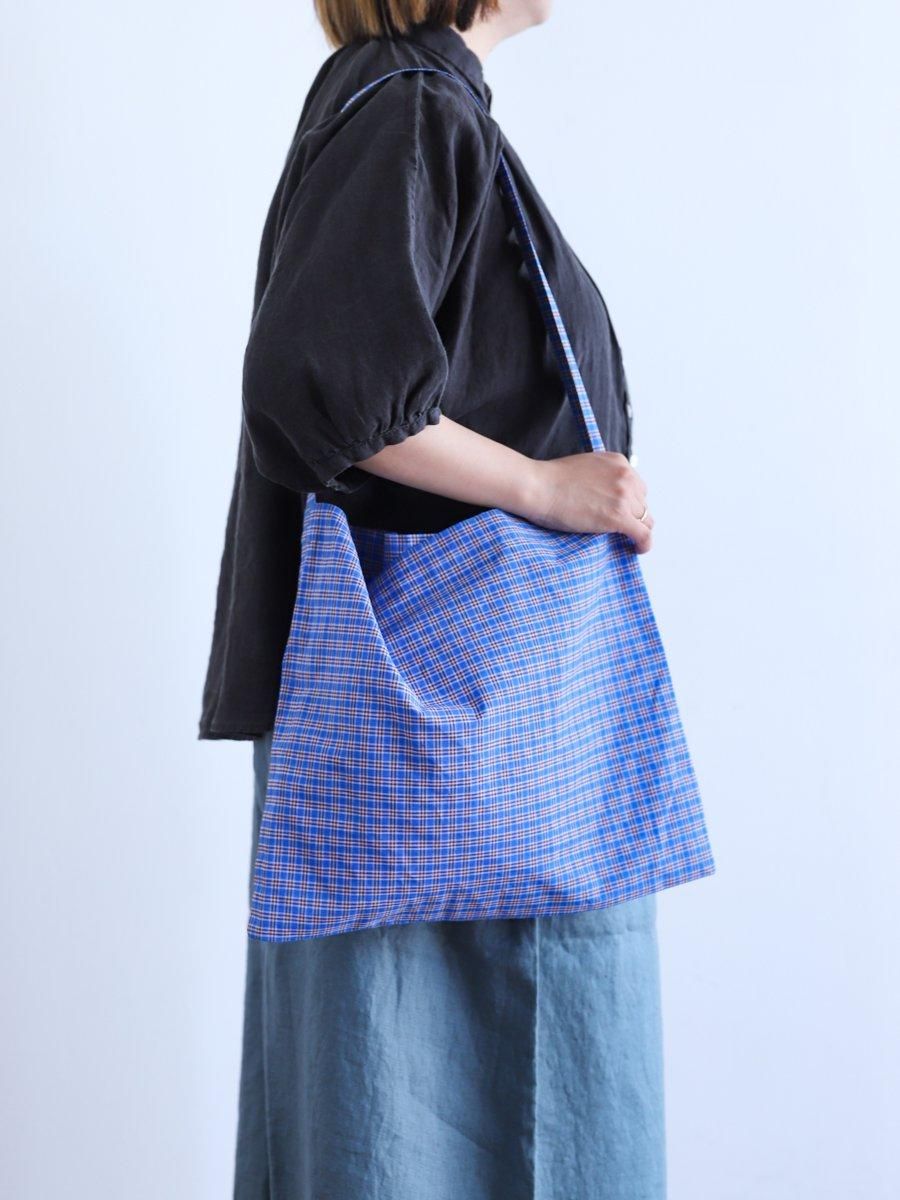 南インドの日常着 "ルンギ" に使われる青を基調としたマドラスチェックの生地を使用。