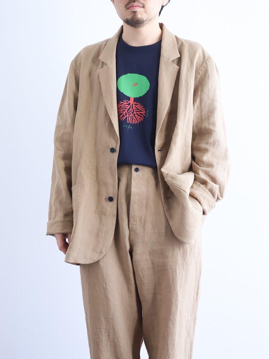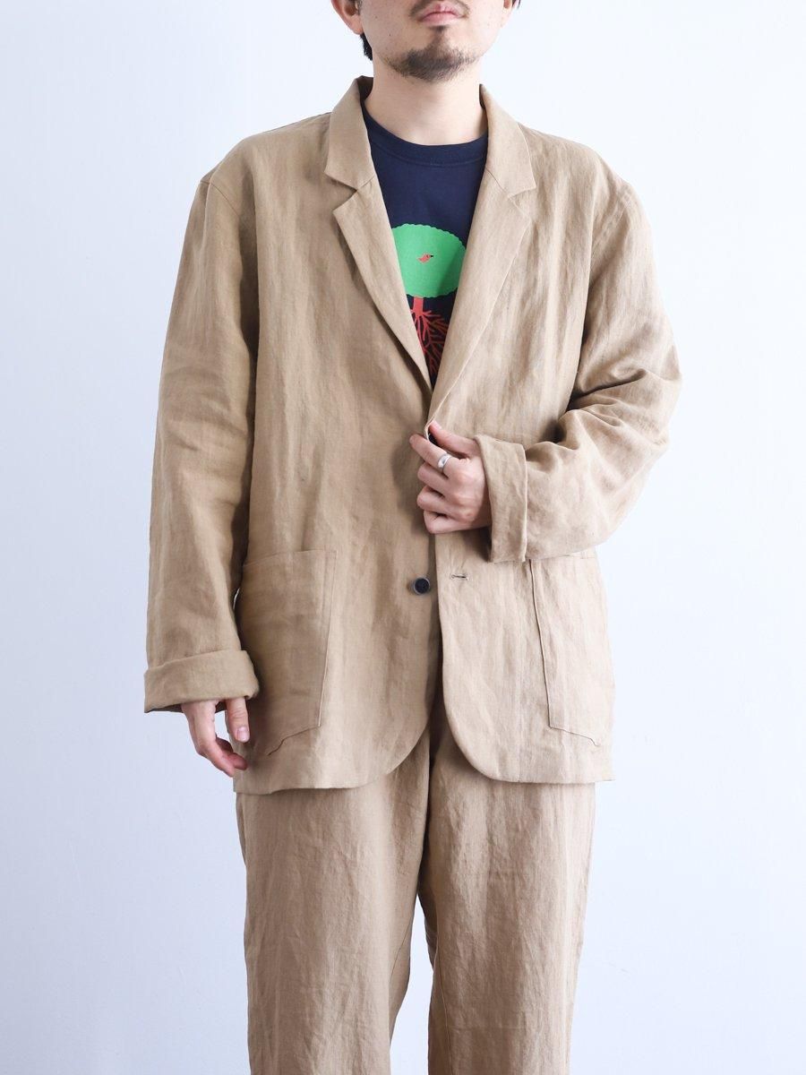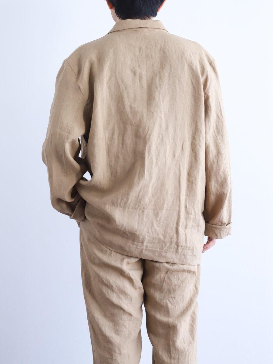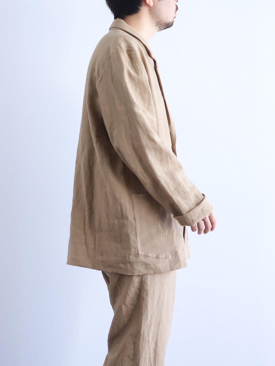 一見、粗野な雰囲気にもみえますが、使用しているのはリネンとシルクというギャップ。