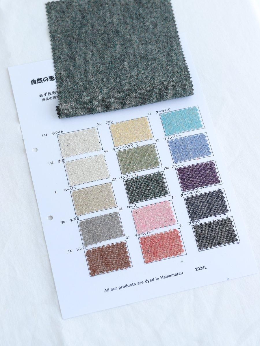 色の濃淡やネップ感など楽しい表情が個性的な生地。