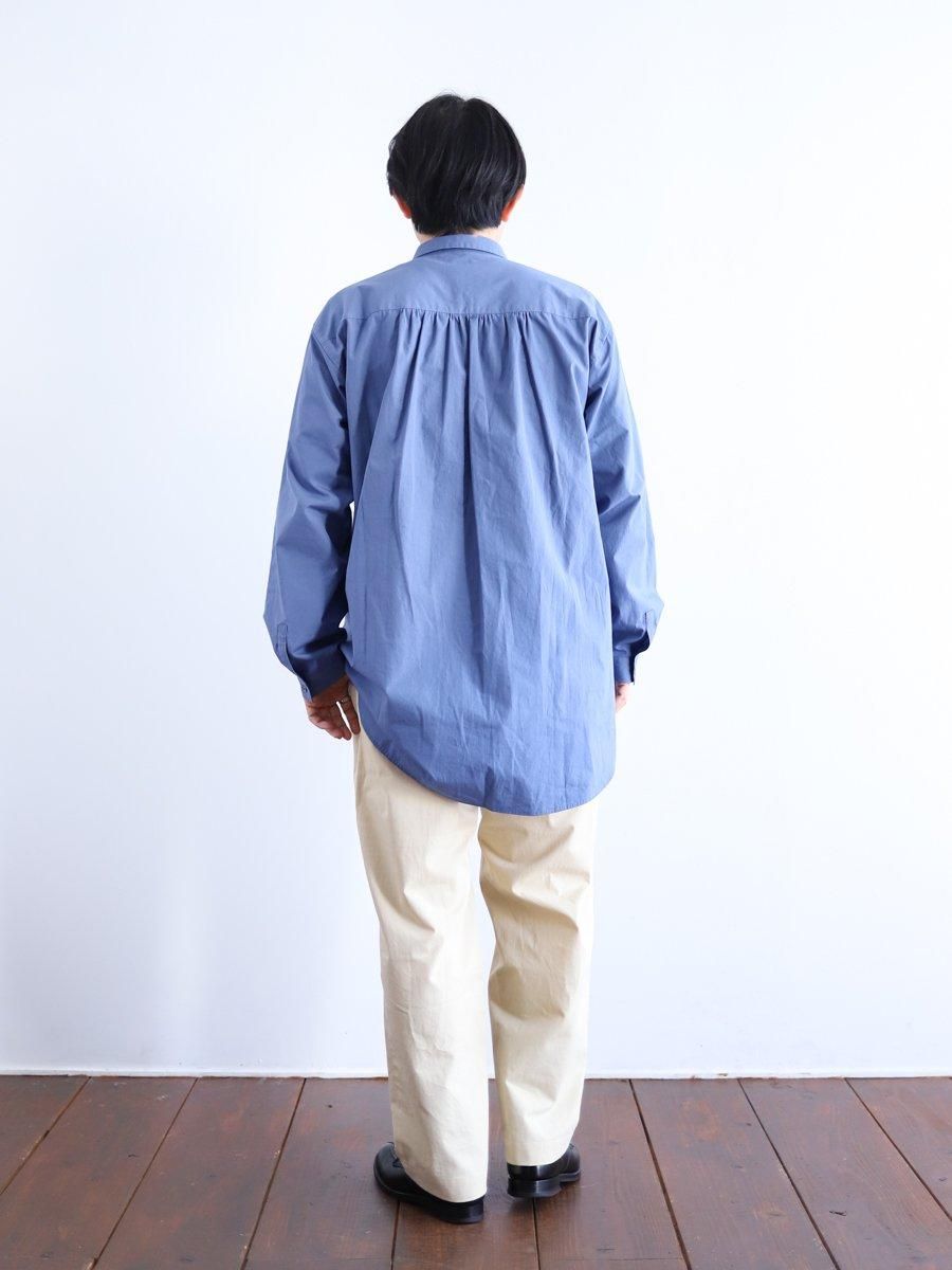 ワークウェアの雰囲気を取り入れつつ、背中のギャザーが上品な印象を与えてくれます。