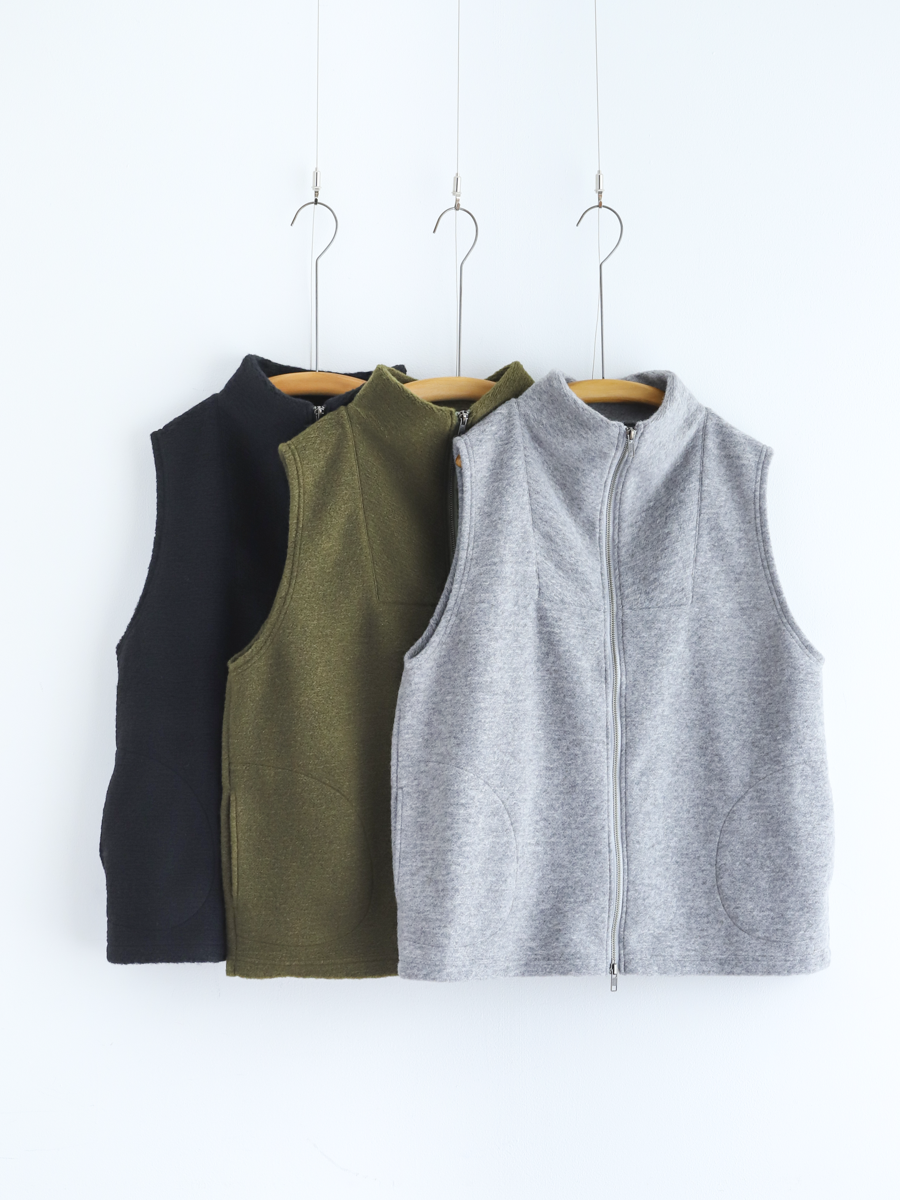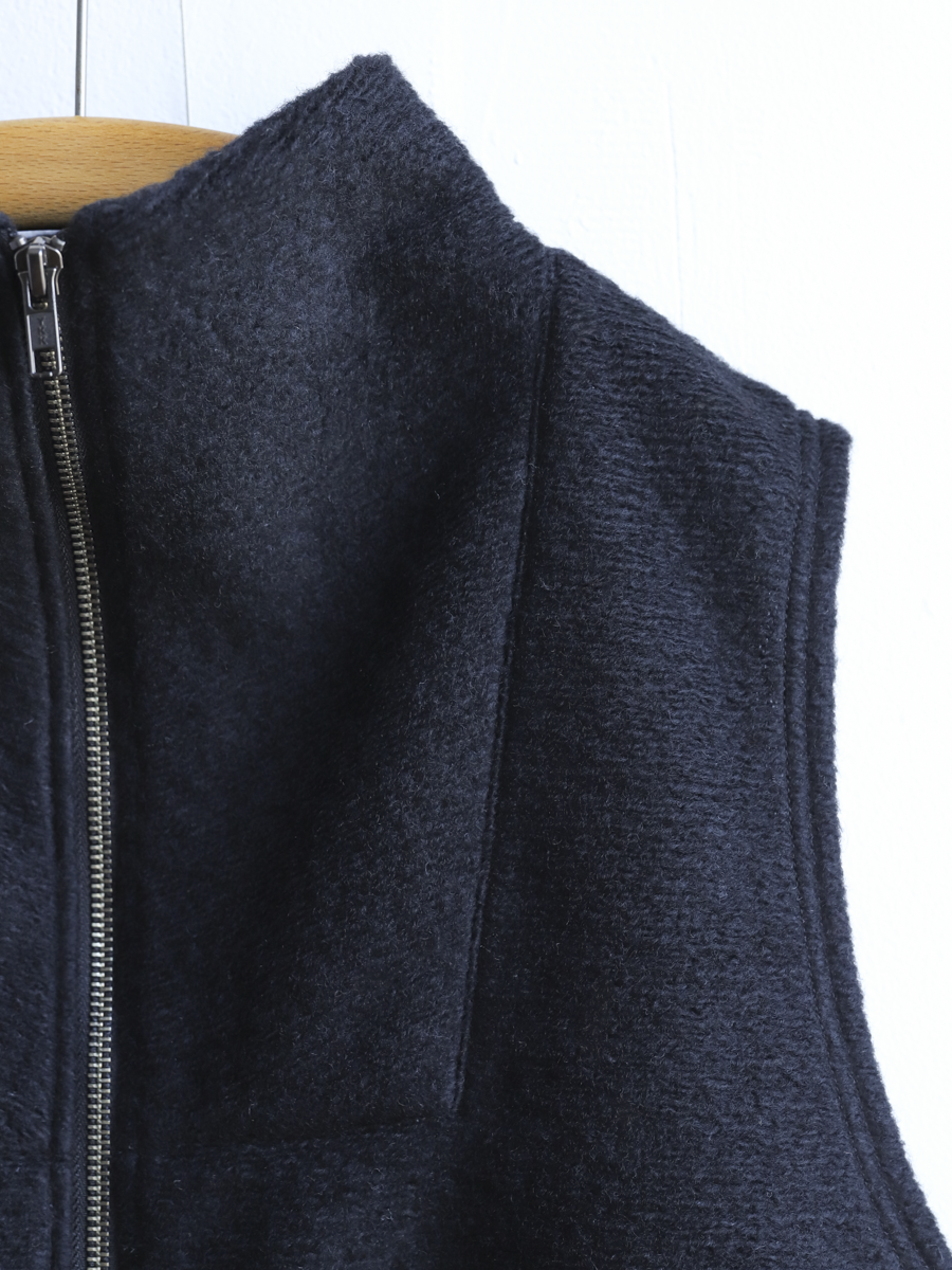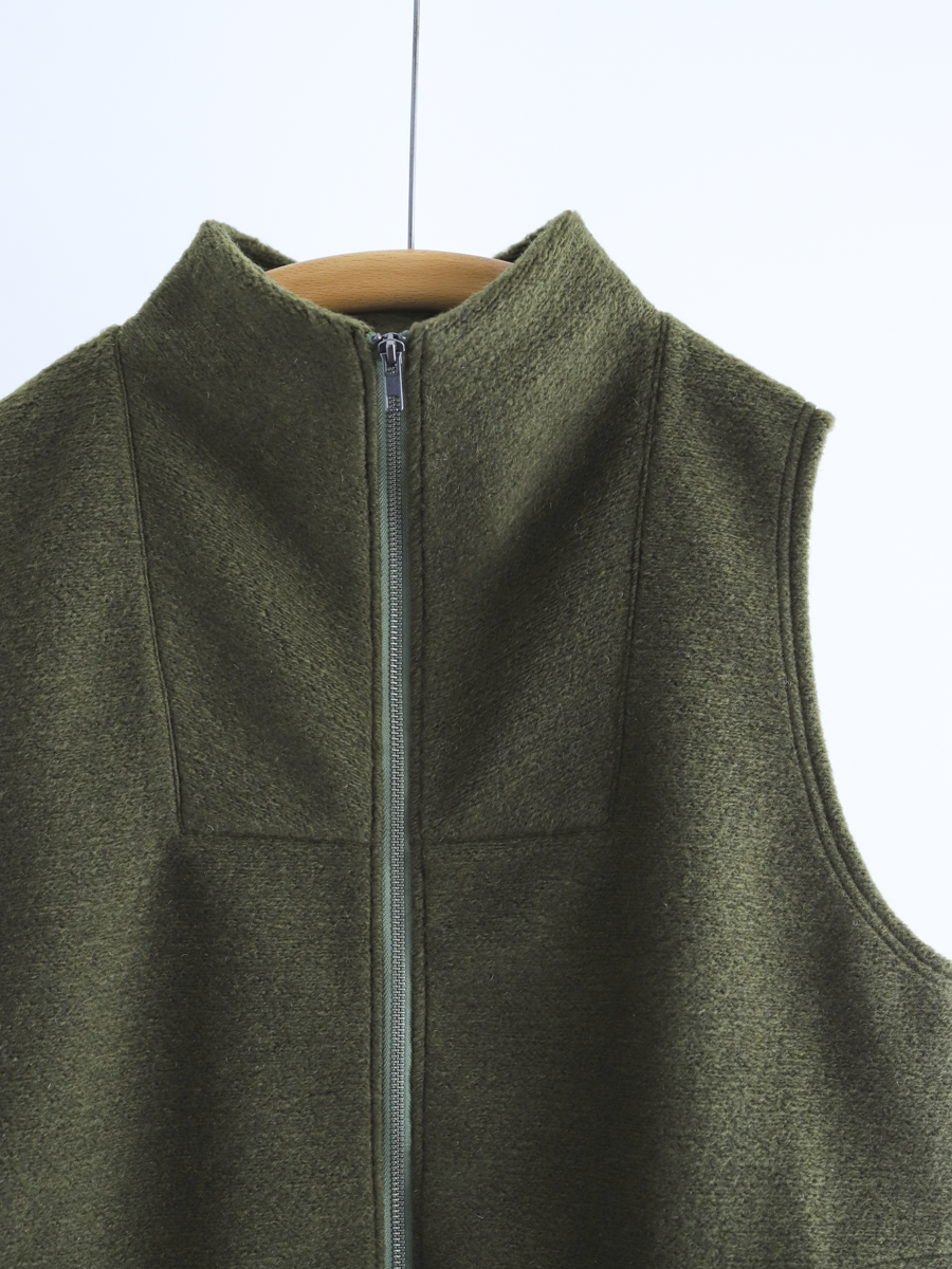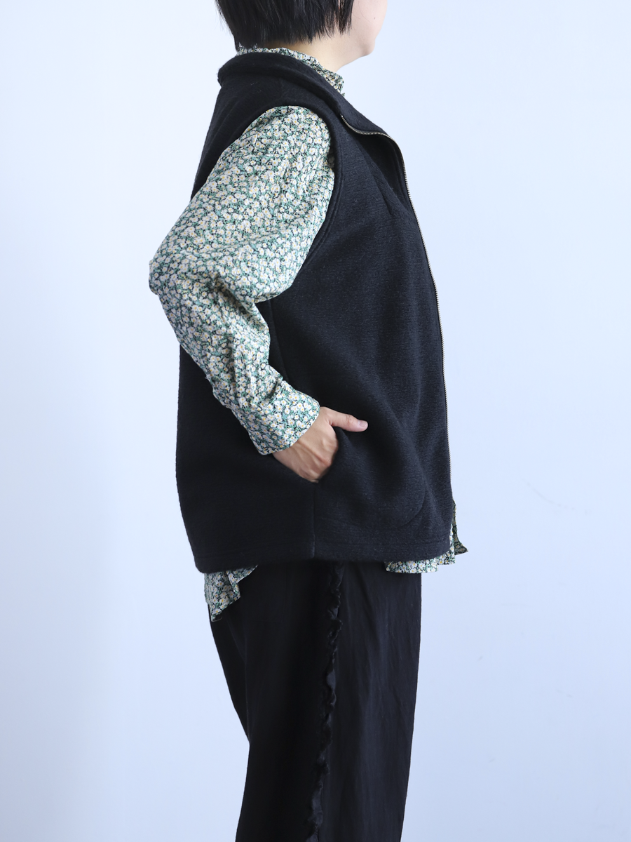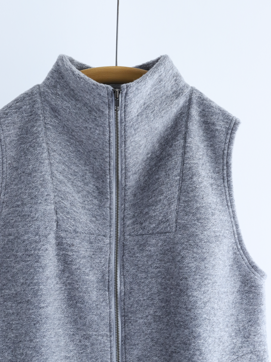 ハイネックのベストで、ダブルジップなので、開け閉めはお好みに合わせてしていただけます。