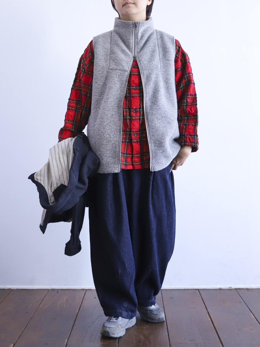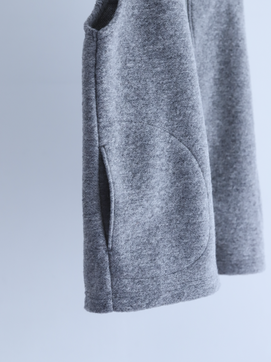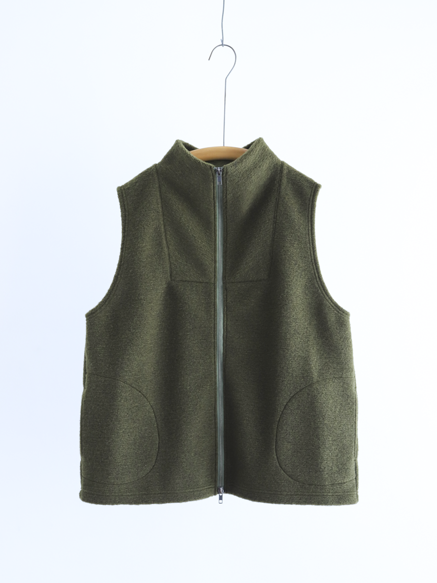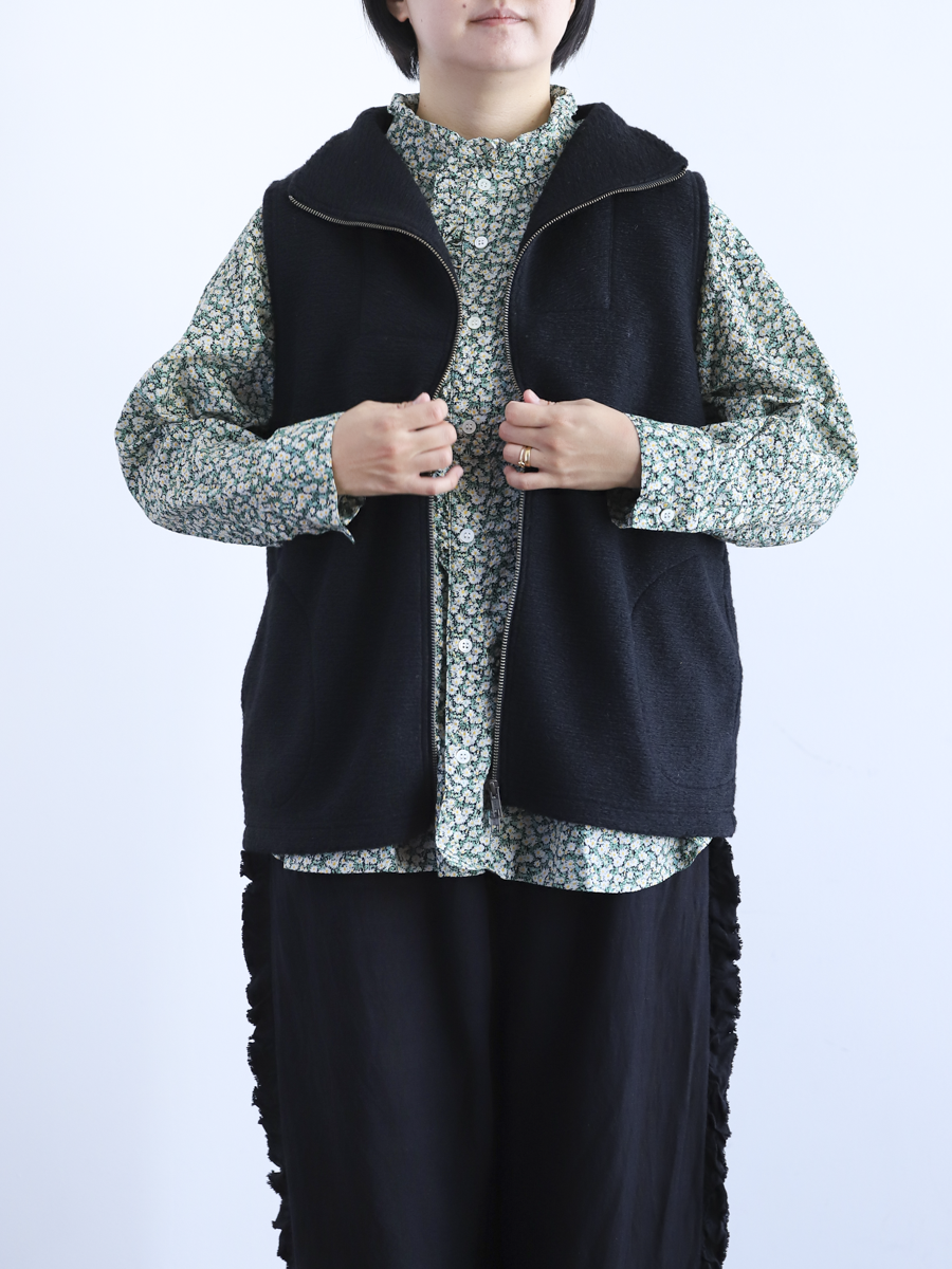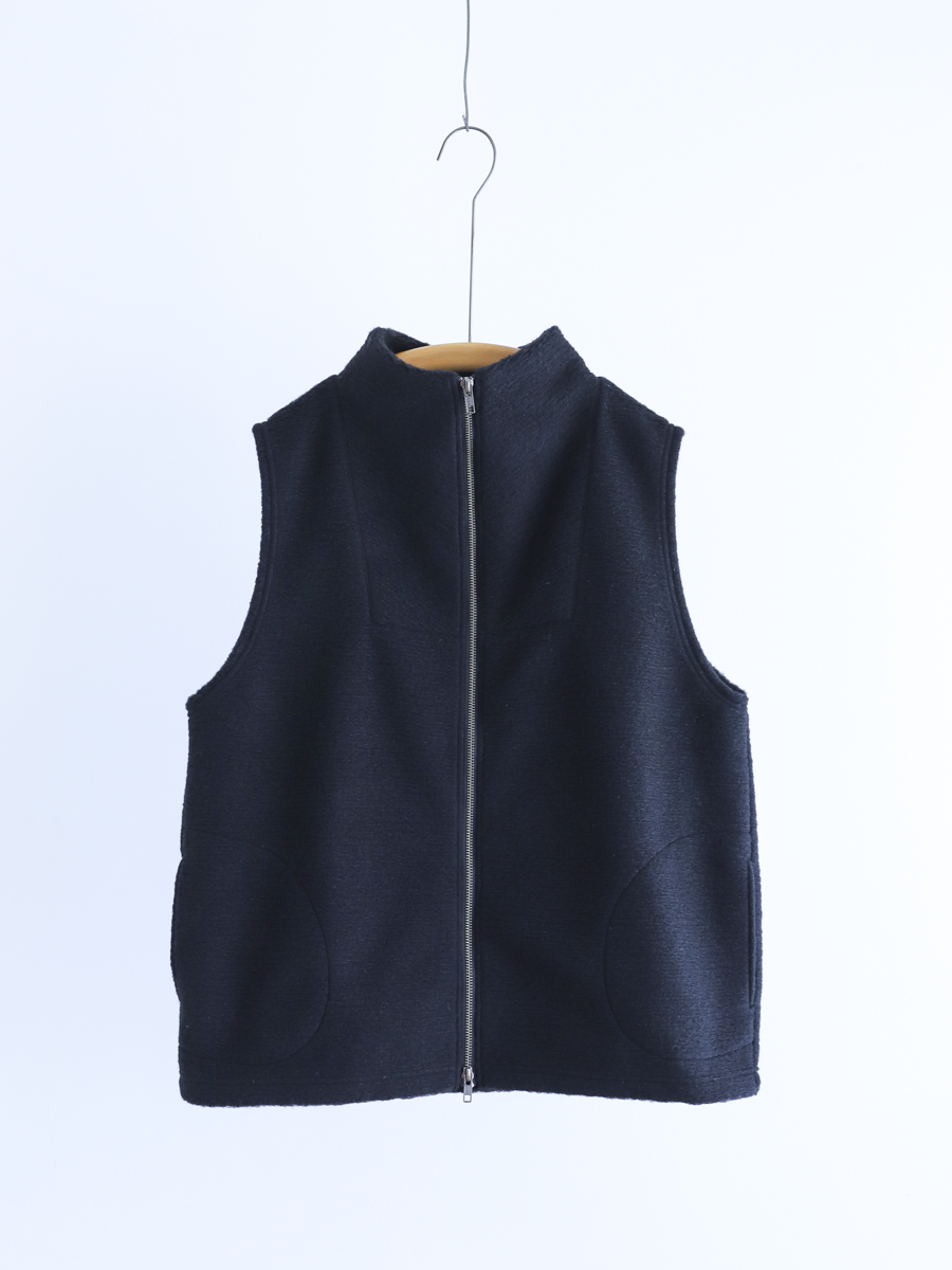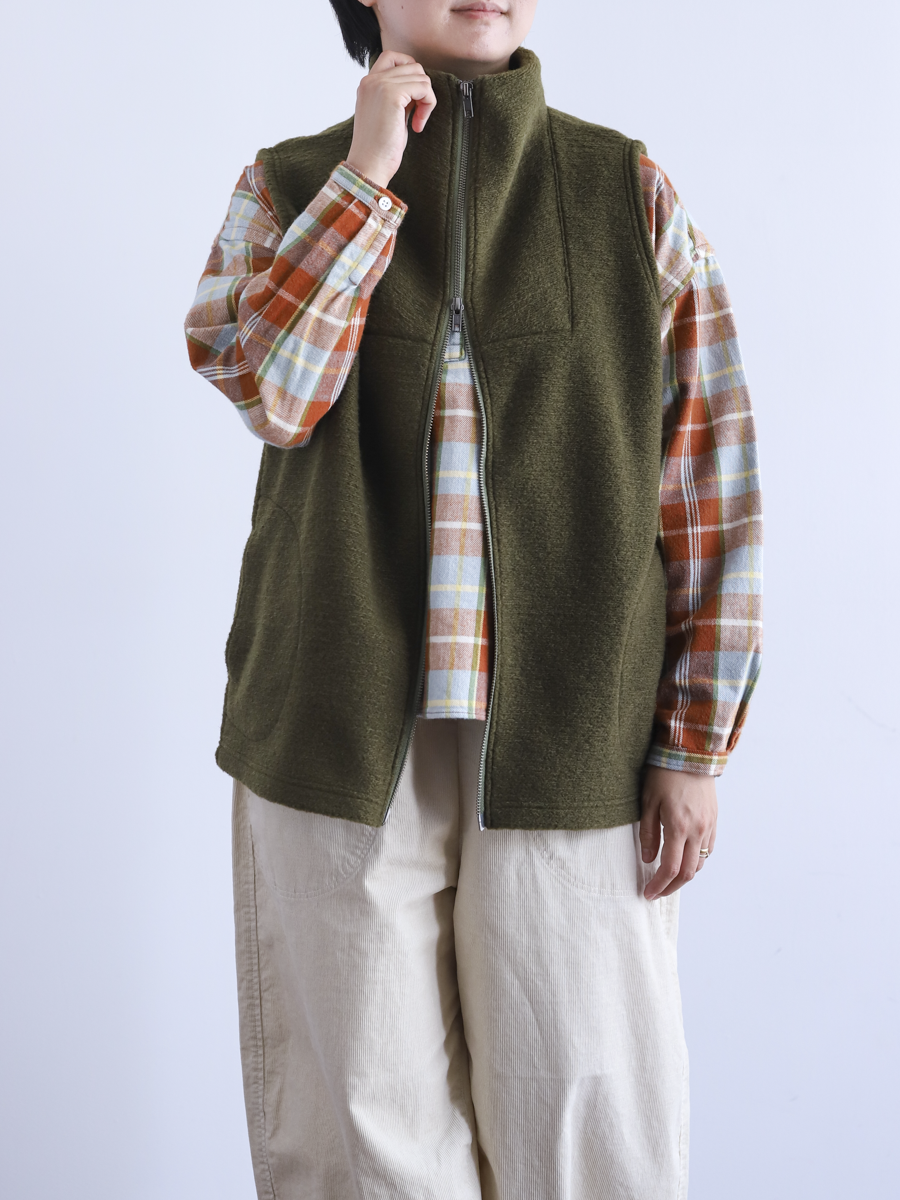 ハイネックのベストで、ダブルジップなので、開け閉めはお好みに合わせてしていただけます。