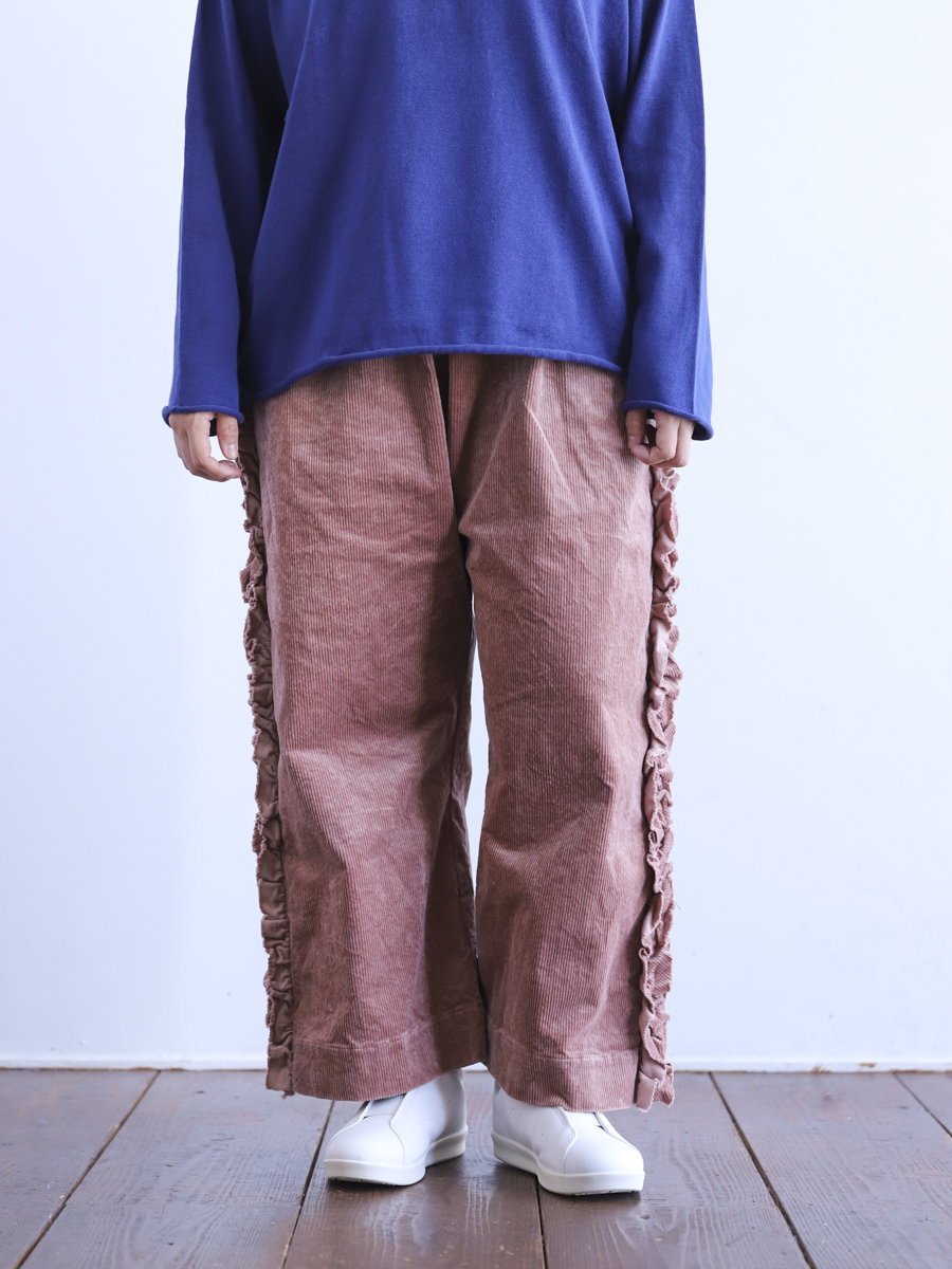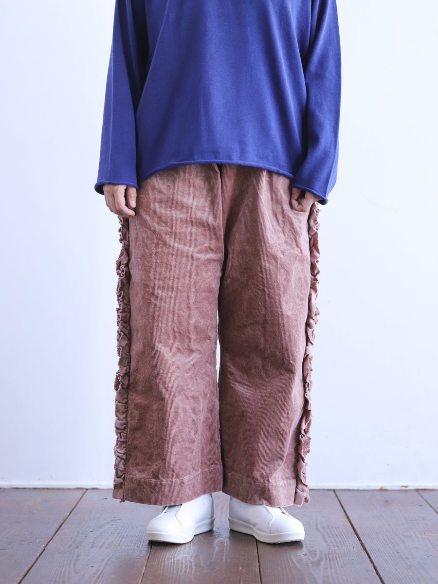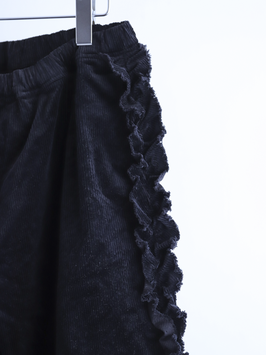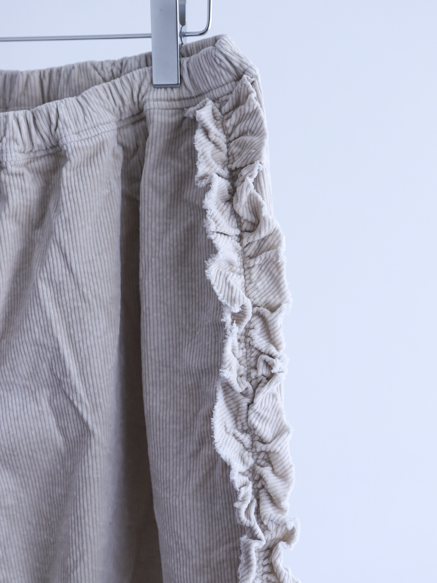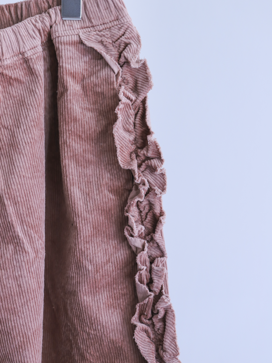 コーデュロイは生地感がカジュアルなので、フリルの甘さが抑え目です。