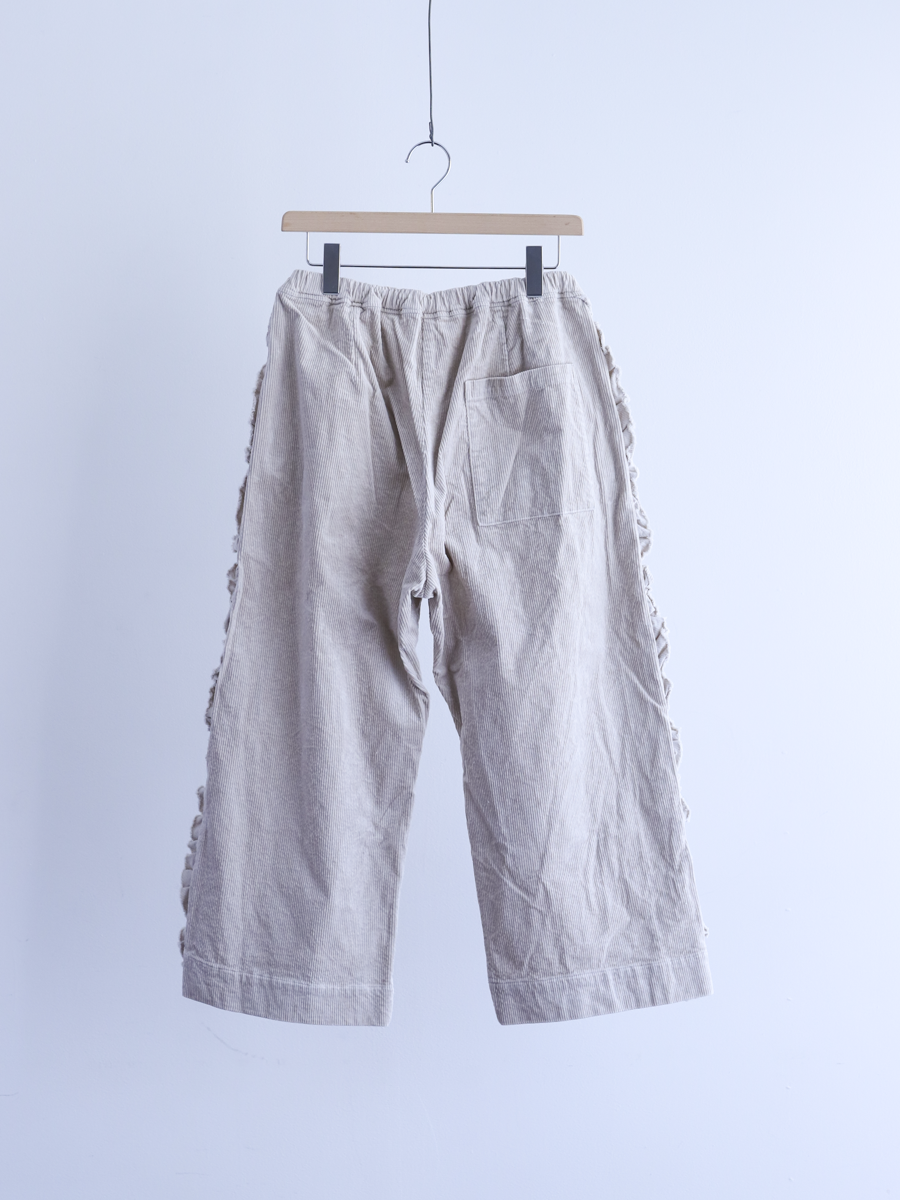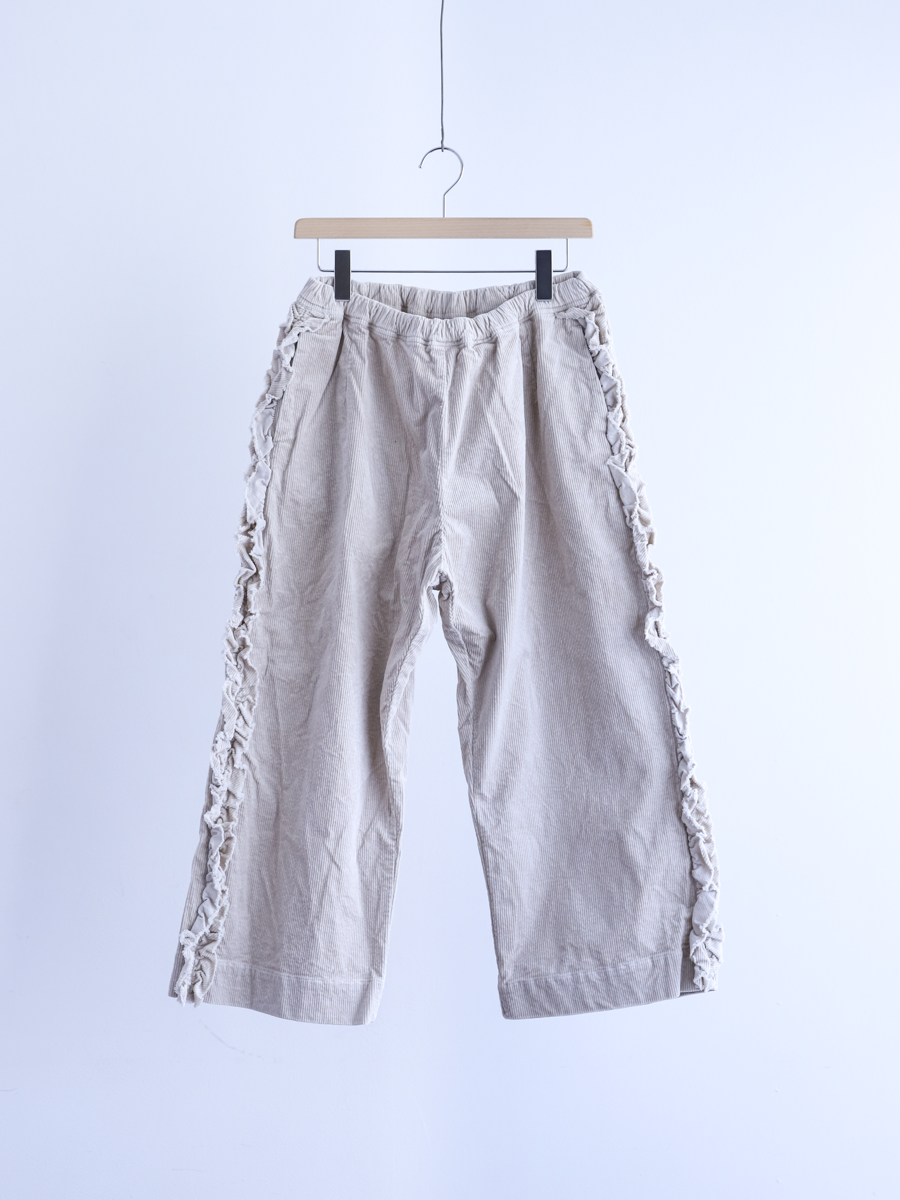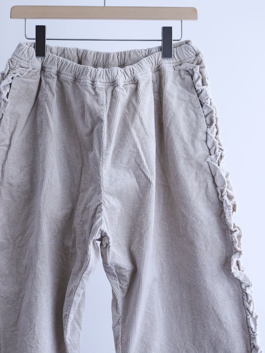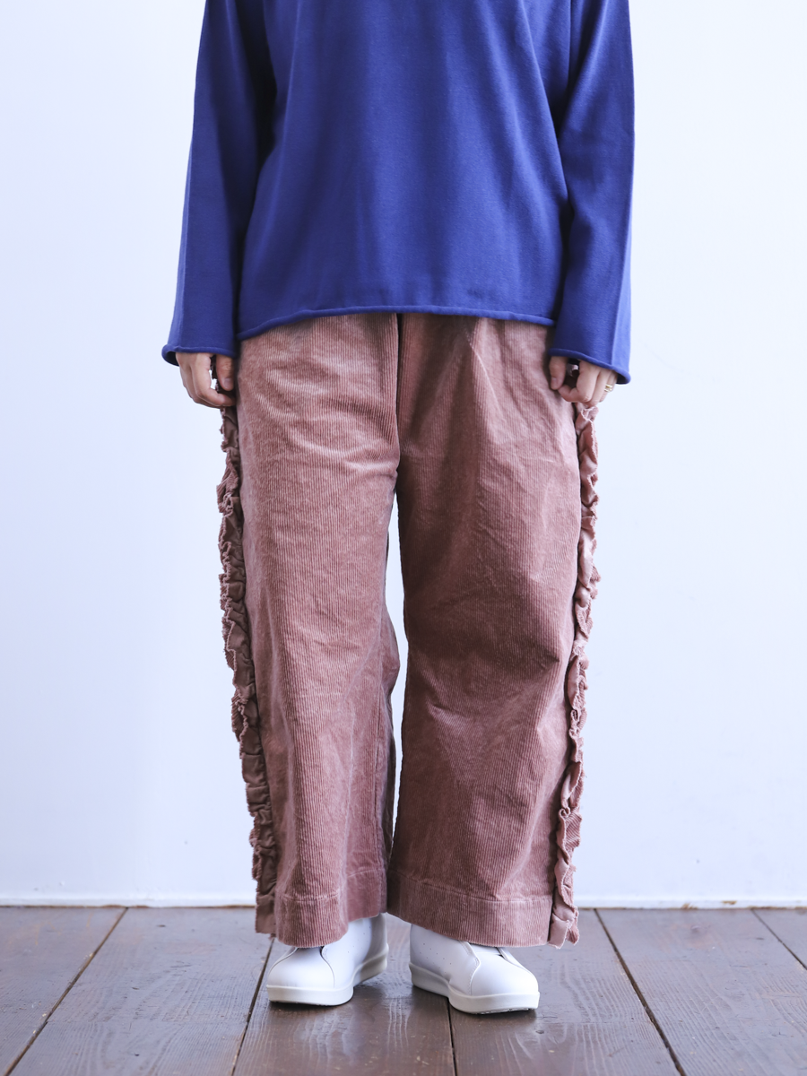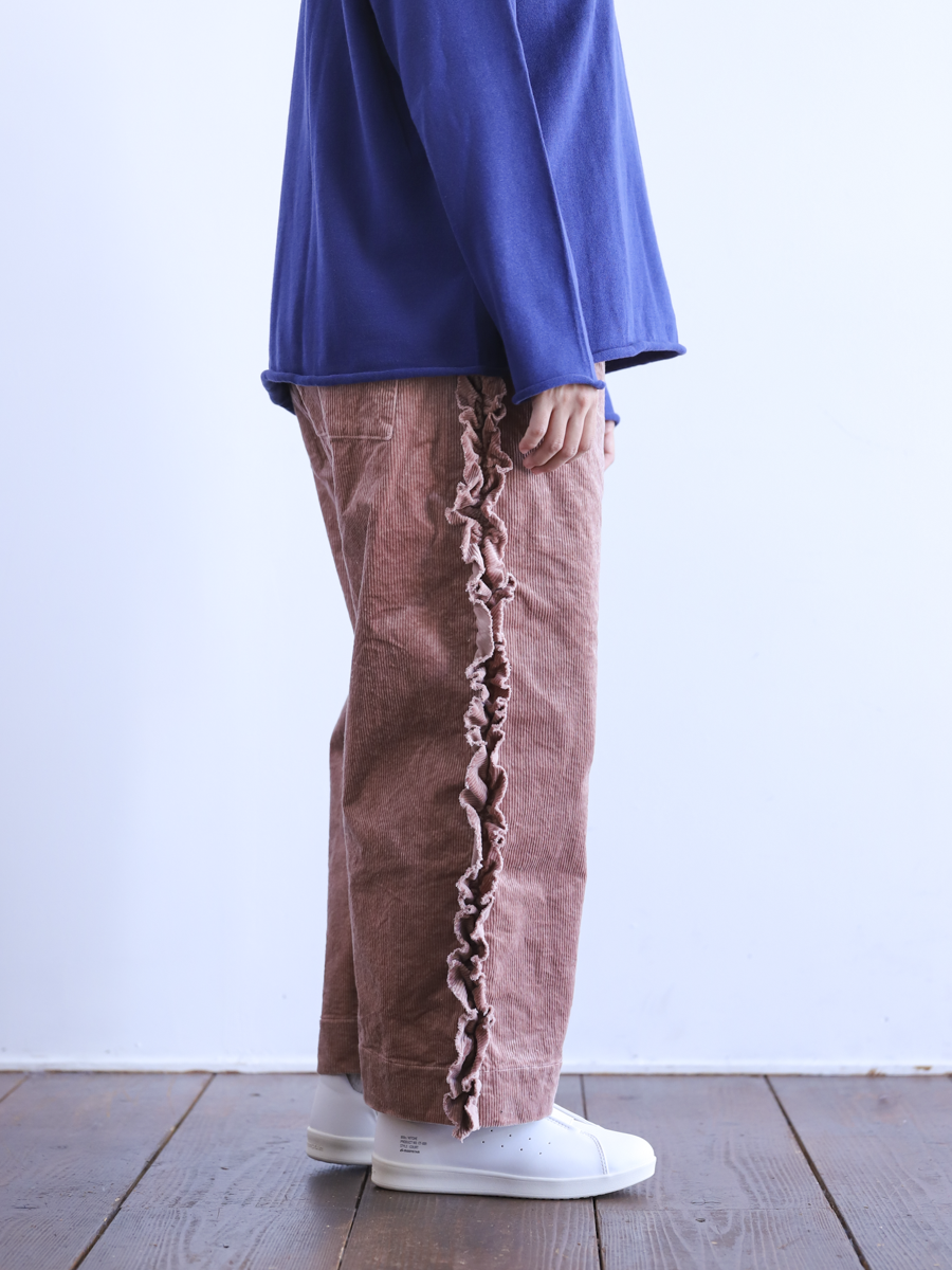 コーデュロイは生地感がカジュアルなので、フリルの甘さが抑え目です。