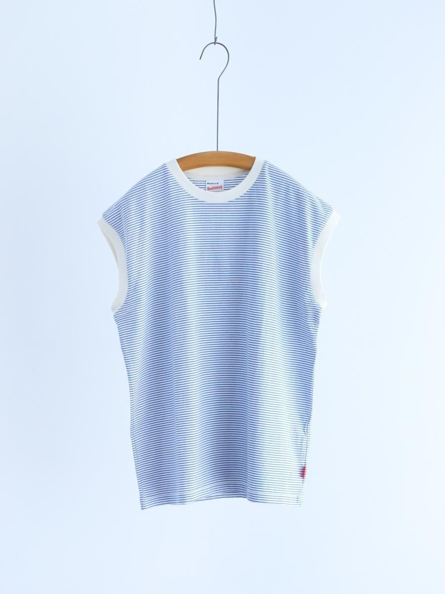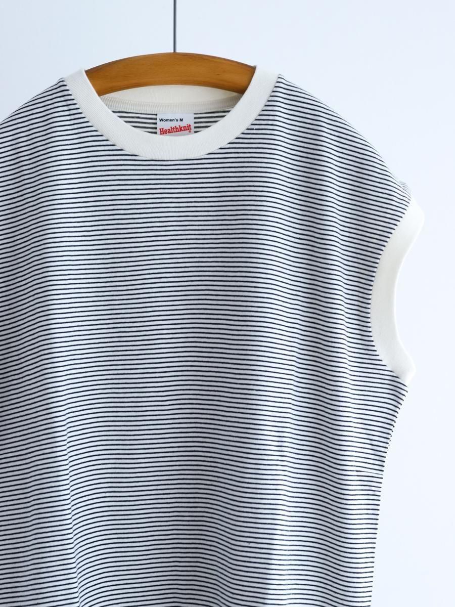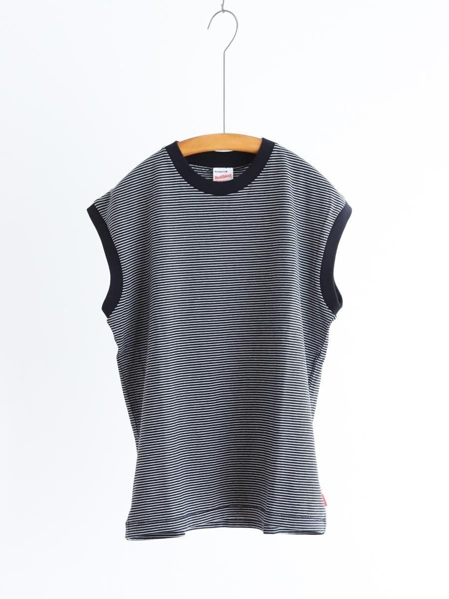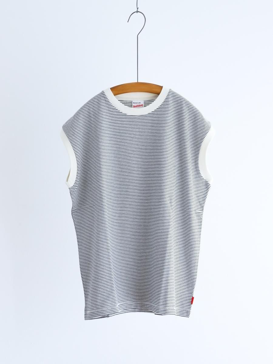 細いボーダーで、滑らかな綺麗めの生地感のTシャツ。