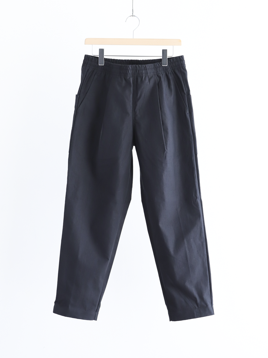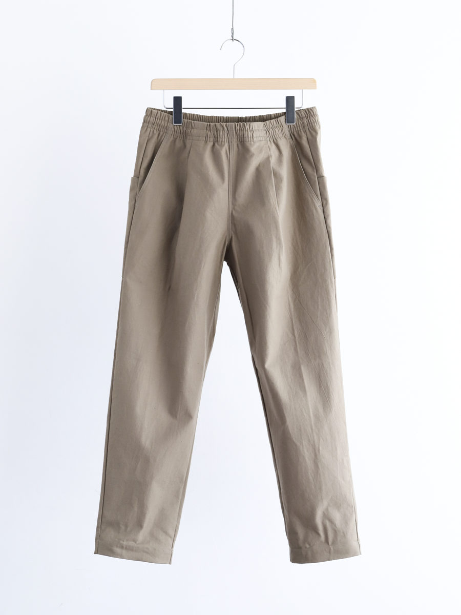 ワンタックで腰回りにゆとりをもたせ、膝から裾にかけて細くなっていくテーパードシルエット。