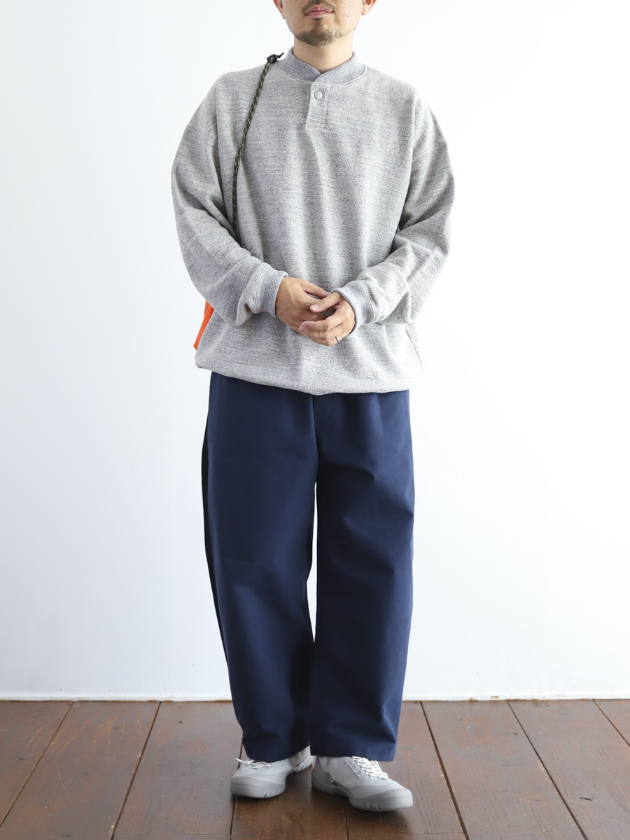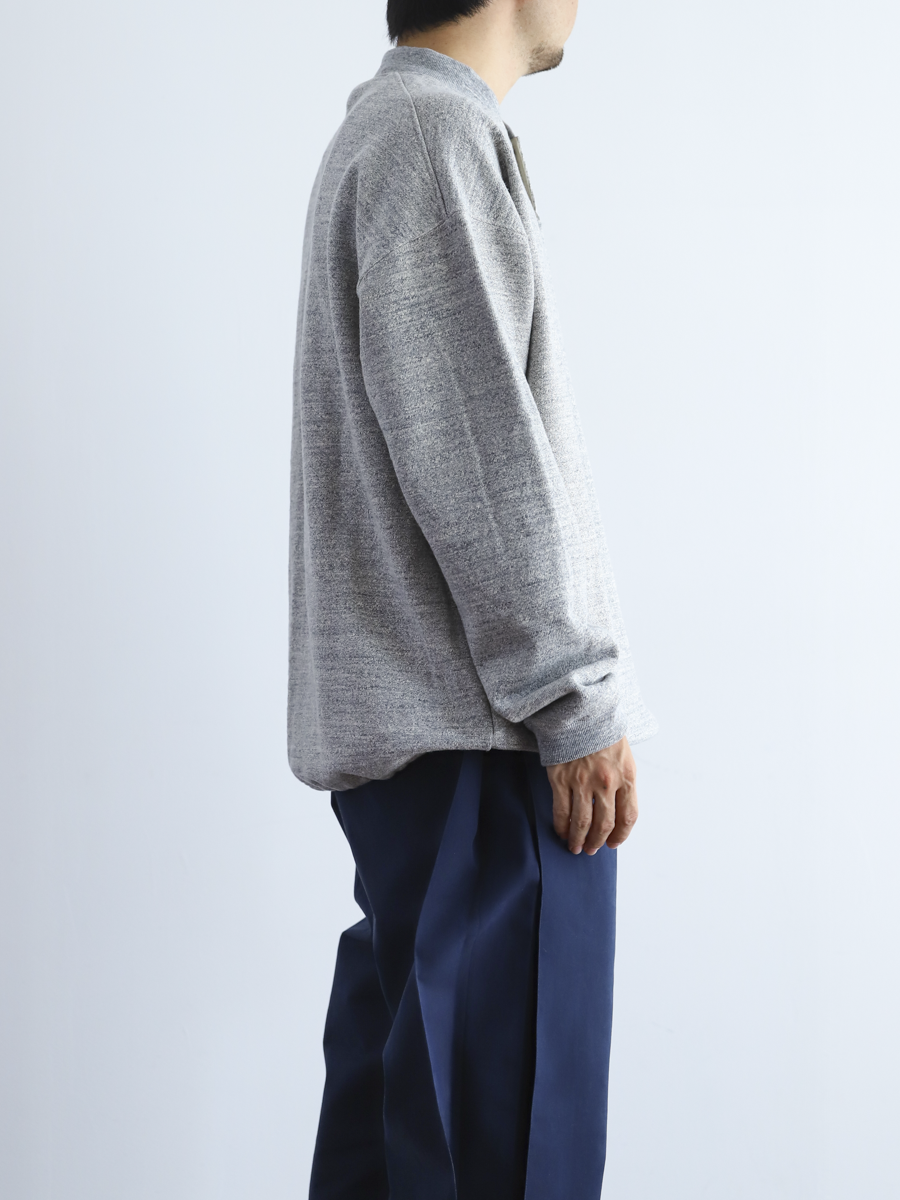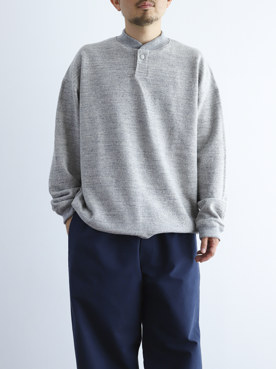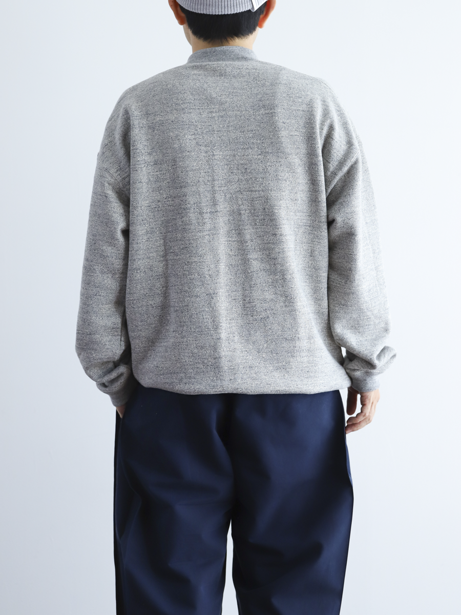 ハーフジップともまた違った雰囲気のあるスウェットです。