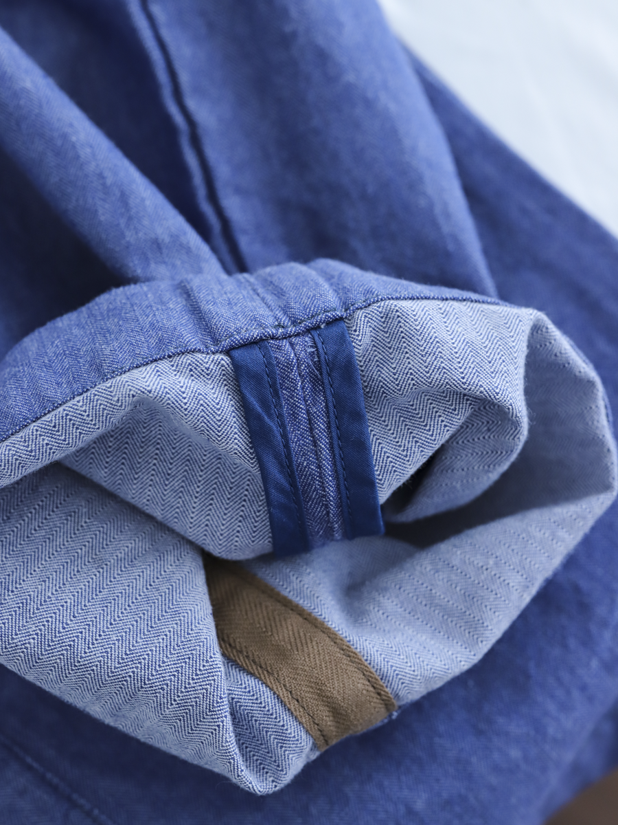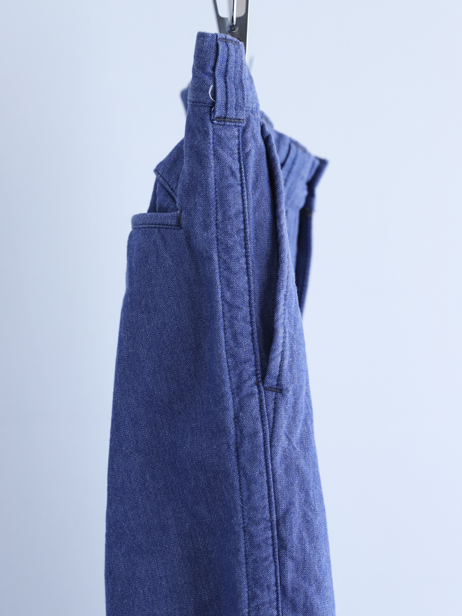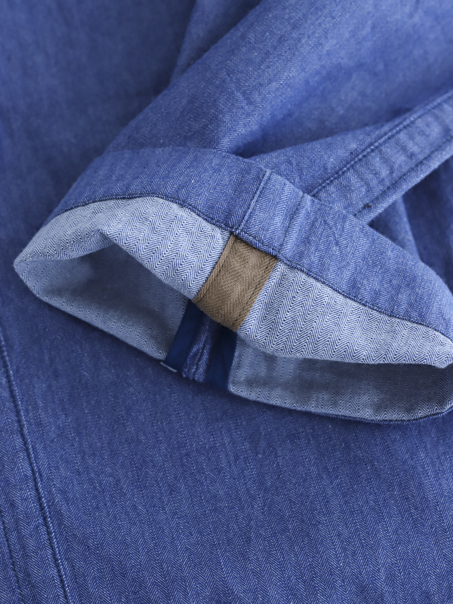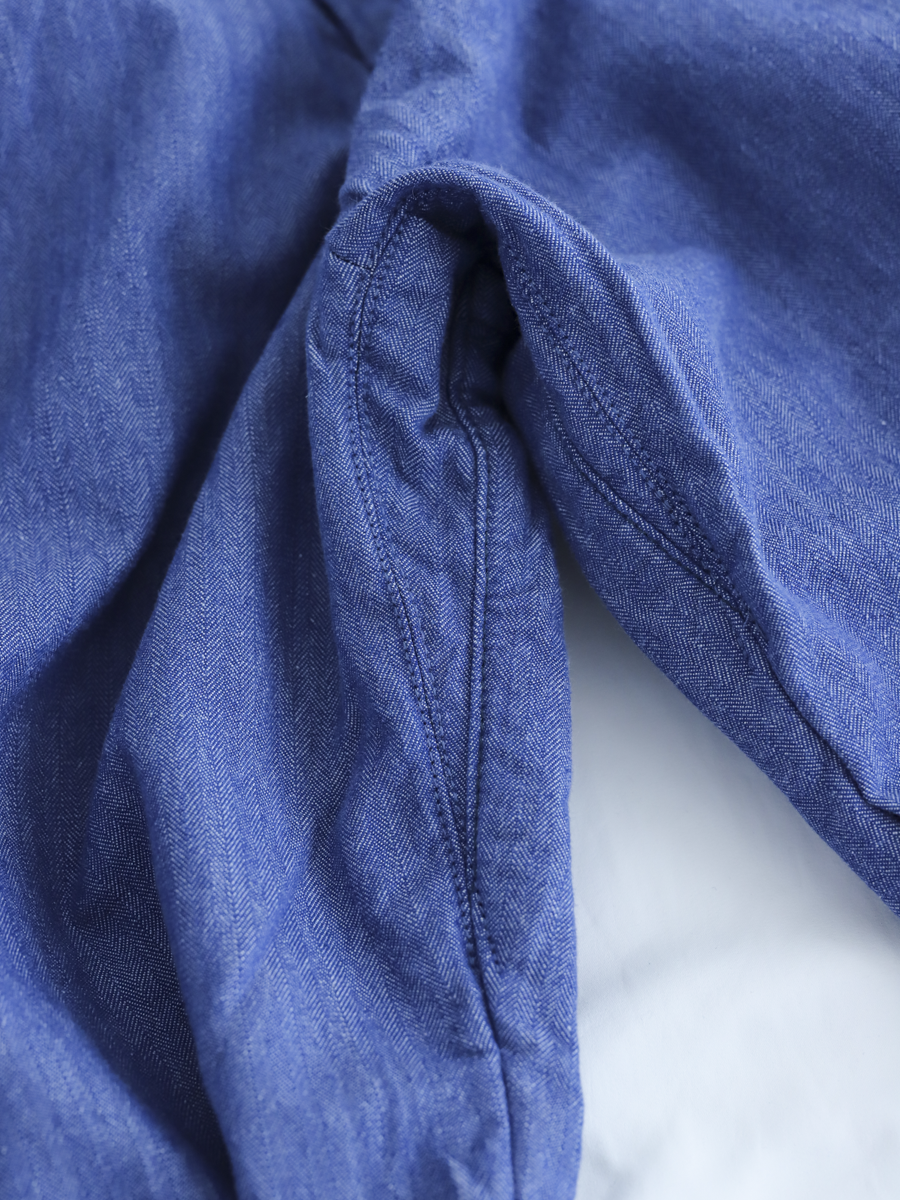 ヨーロッパのヴィンテージワークウェアに使用されていたヘリンボーン生地を参考に、ヴィンテージらしい雰囲気を持ちながら現代にフィットする素材感を目指し、肌触りや強度を追求しています。