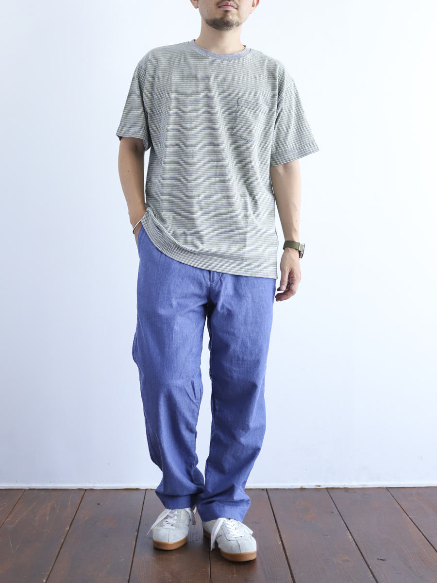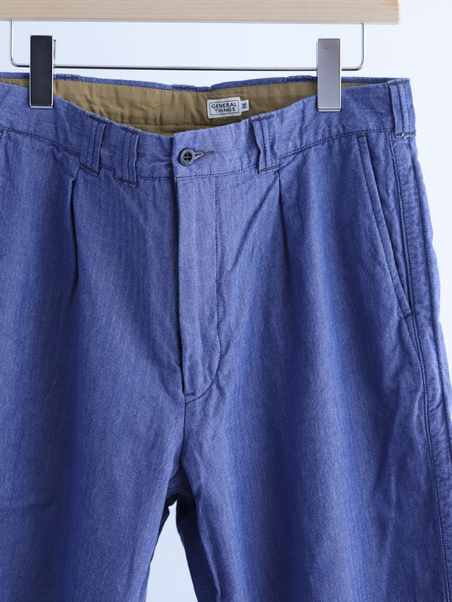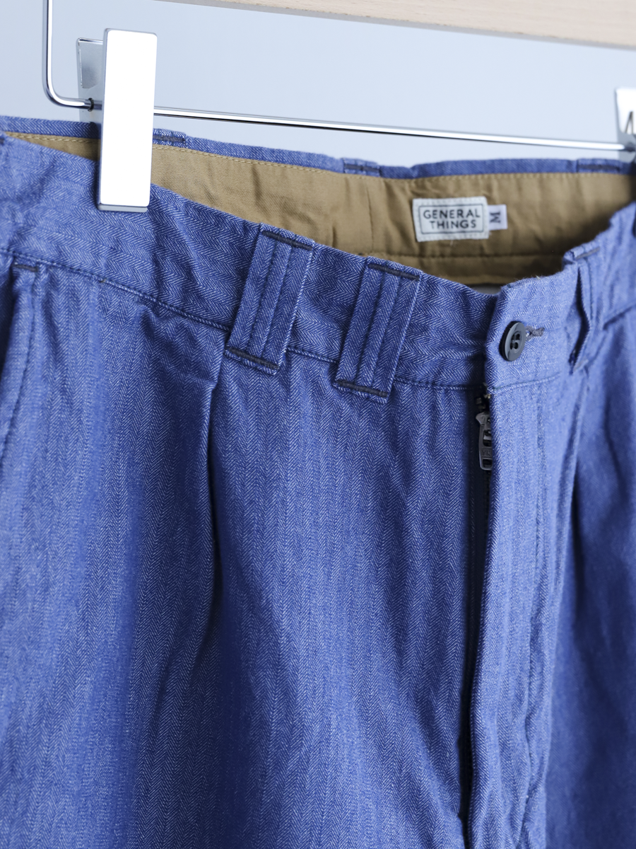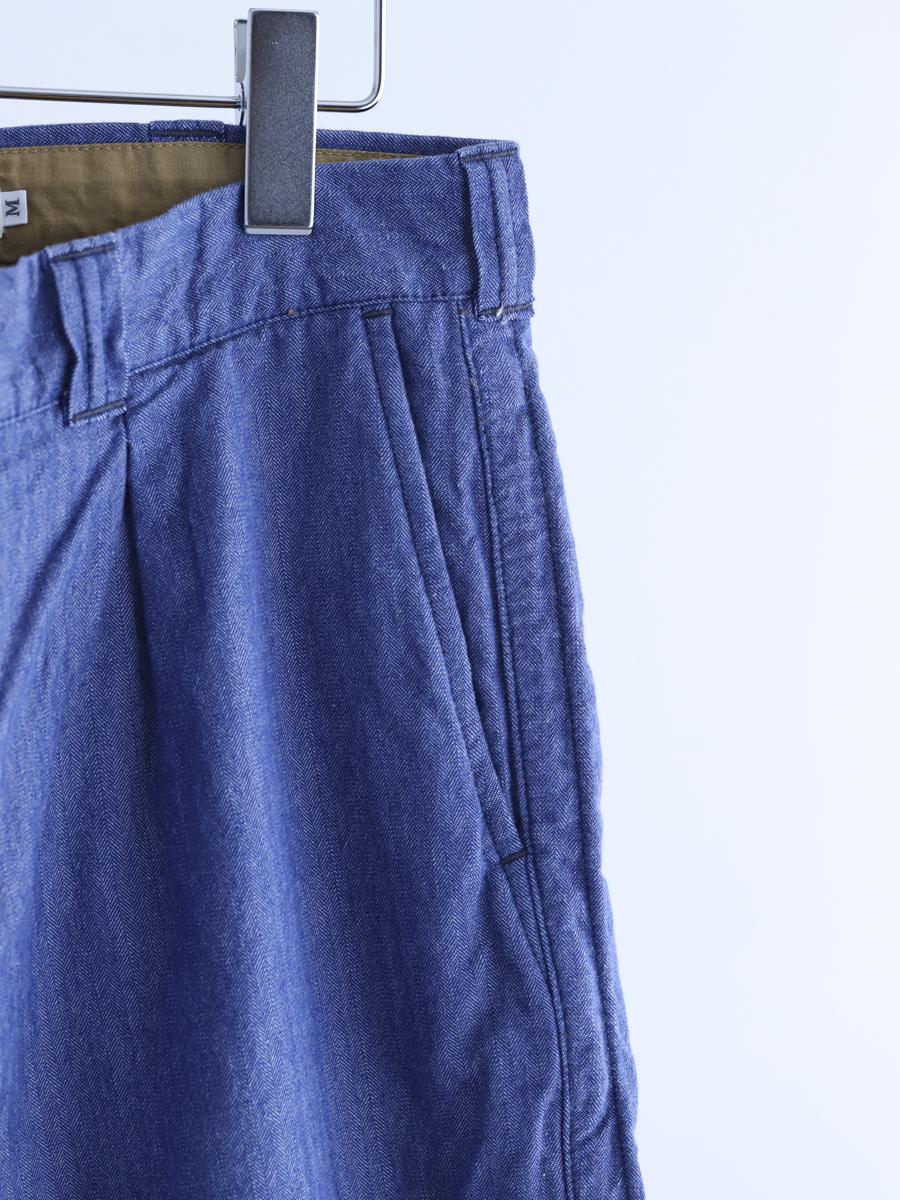 ヨーロッパのヴィンテージワークウェアに使用されていたヘリンボーン生地を参考に、ヴィンテージらしい雰囲気を持ちながら現代にフィットする素材感を目指し、肌触りや強度を追求しています。