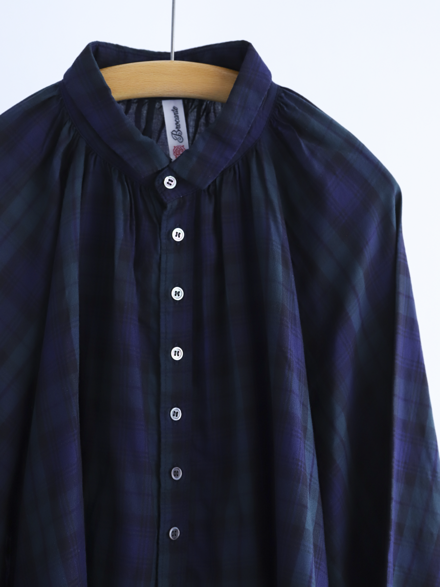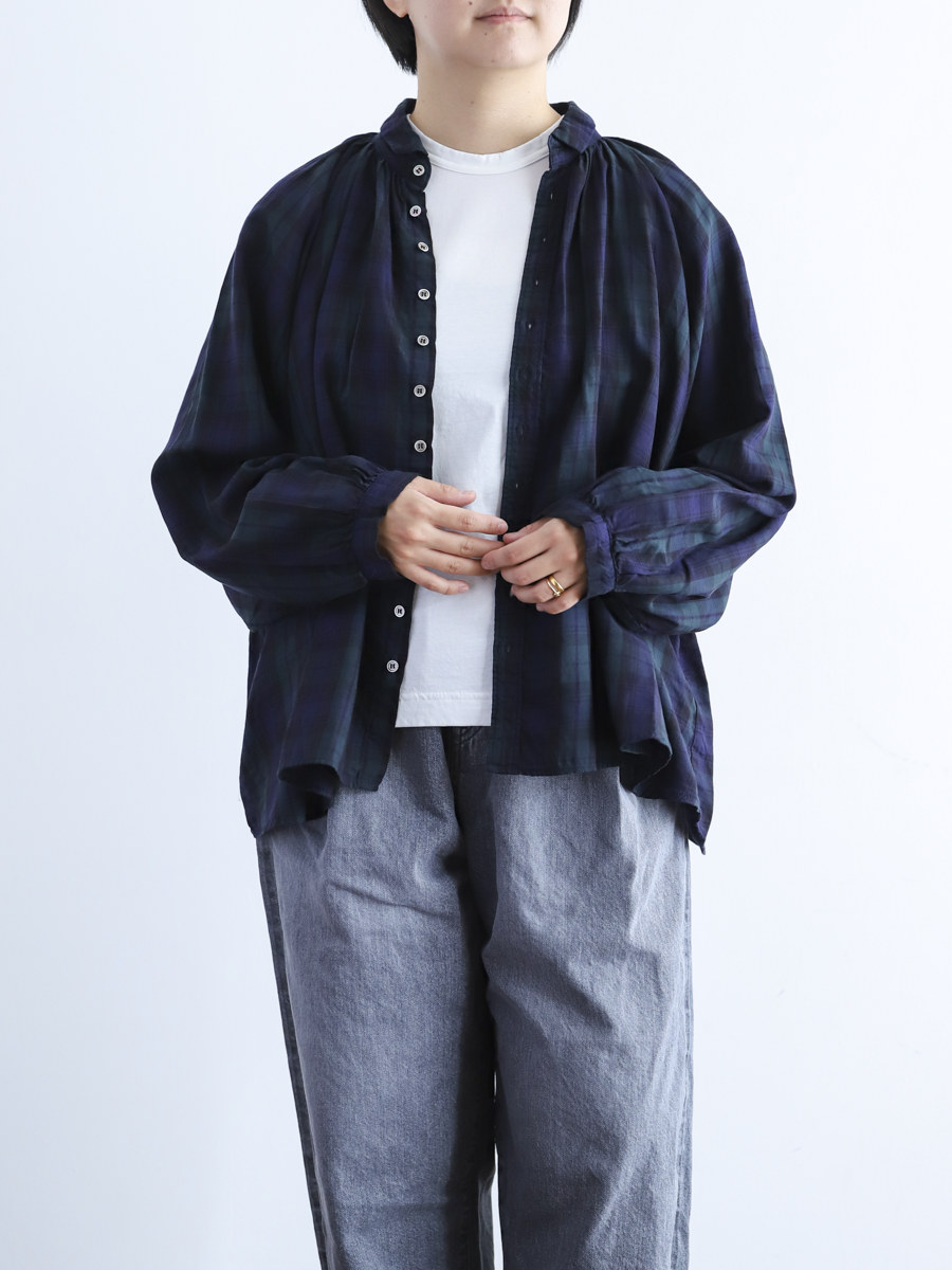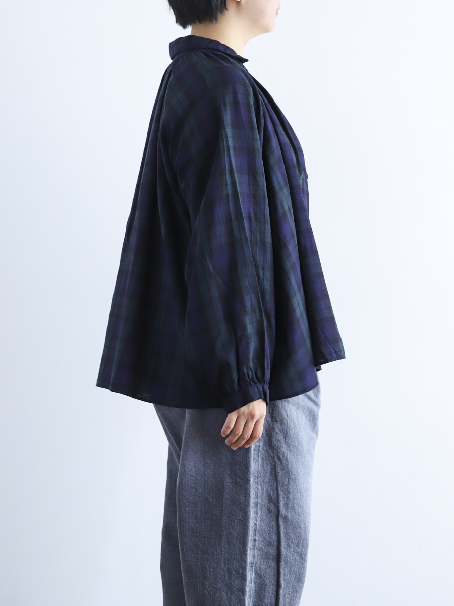 襟元に細かいギャザーが入っていてふんわりとしていますが