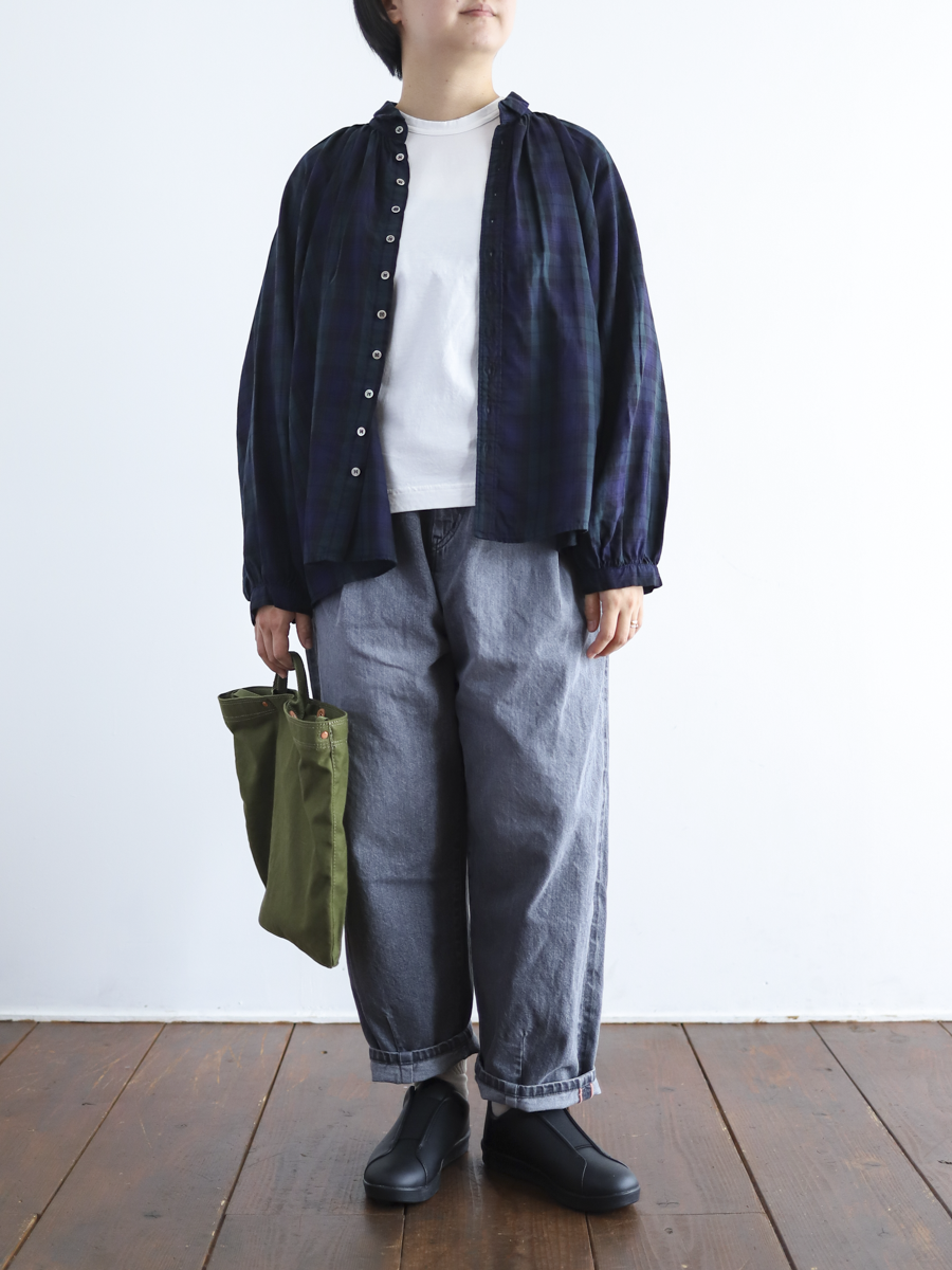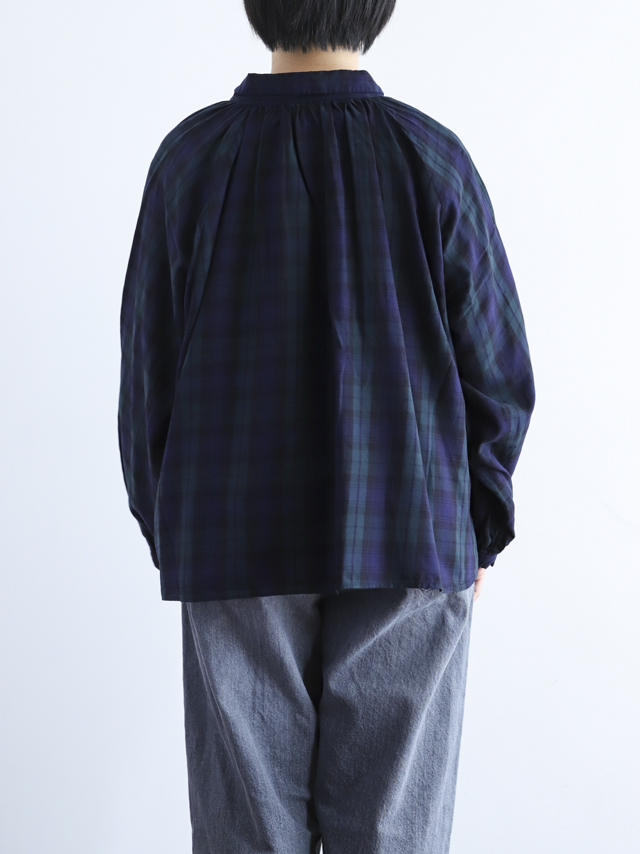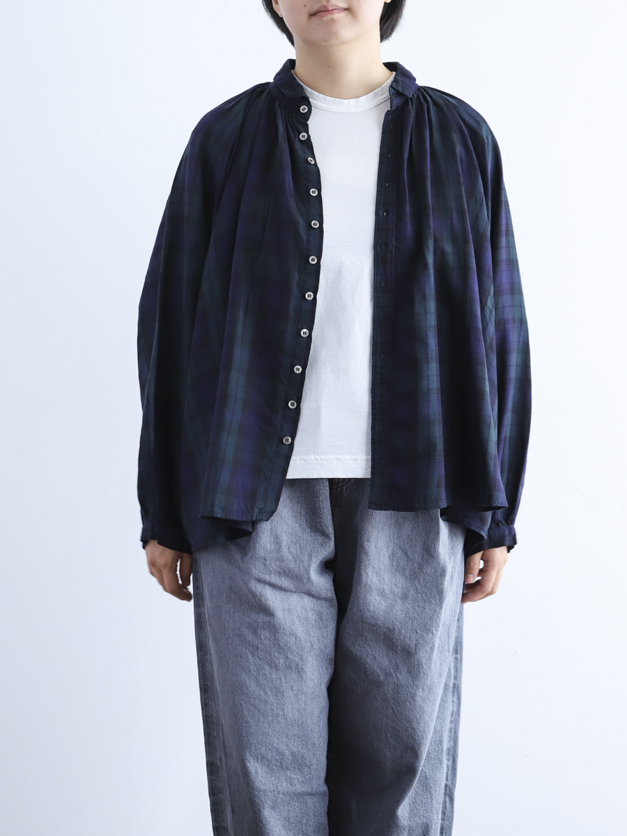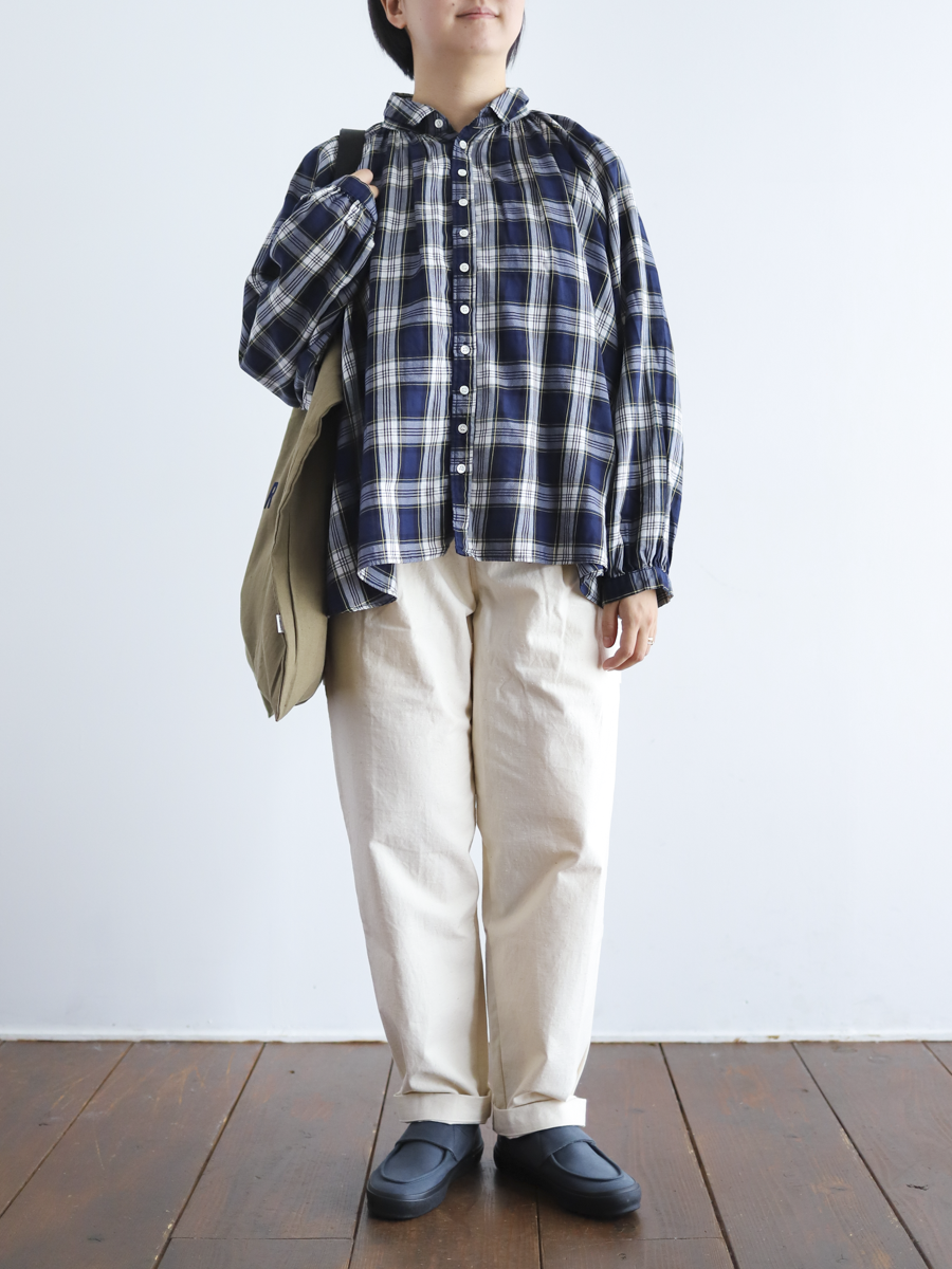 襟元に細かいギャザーが入っていてふんわりとしていますが