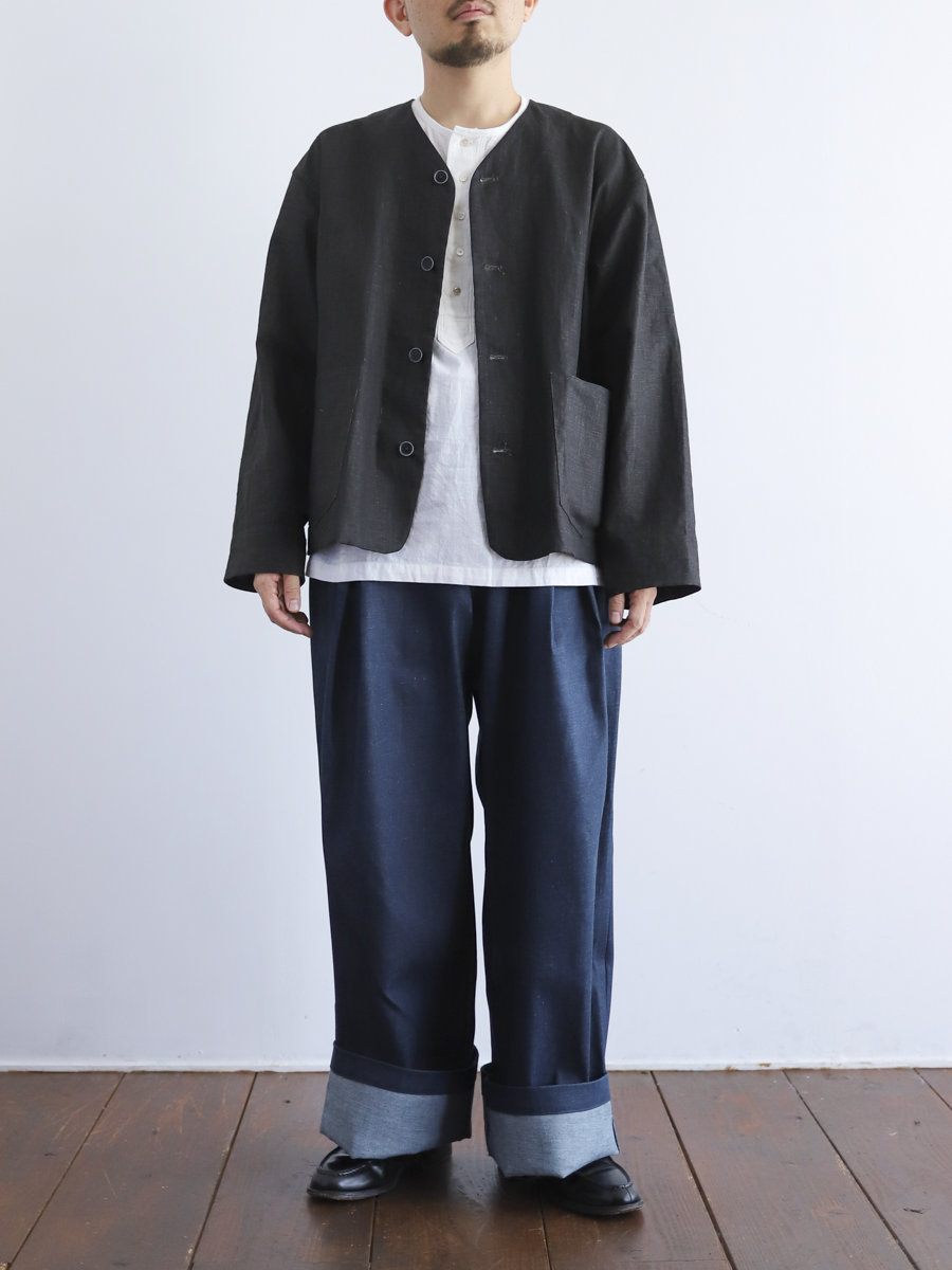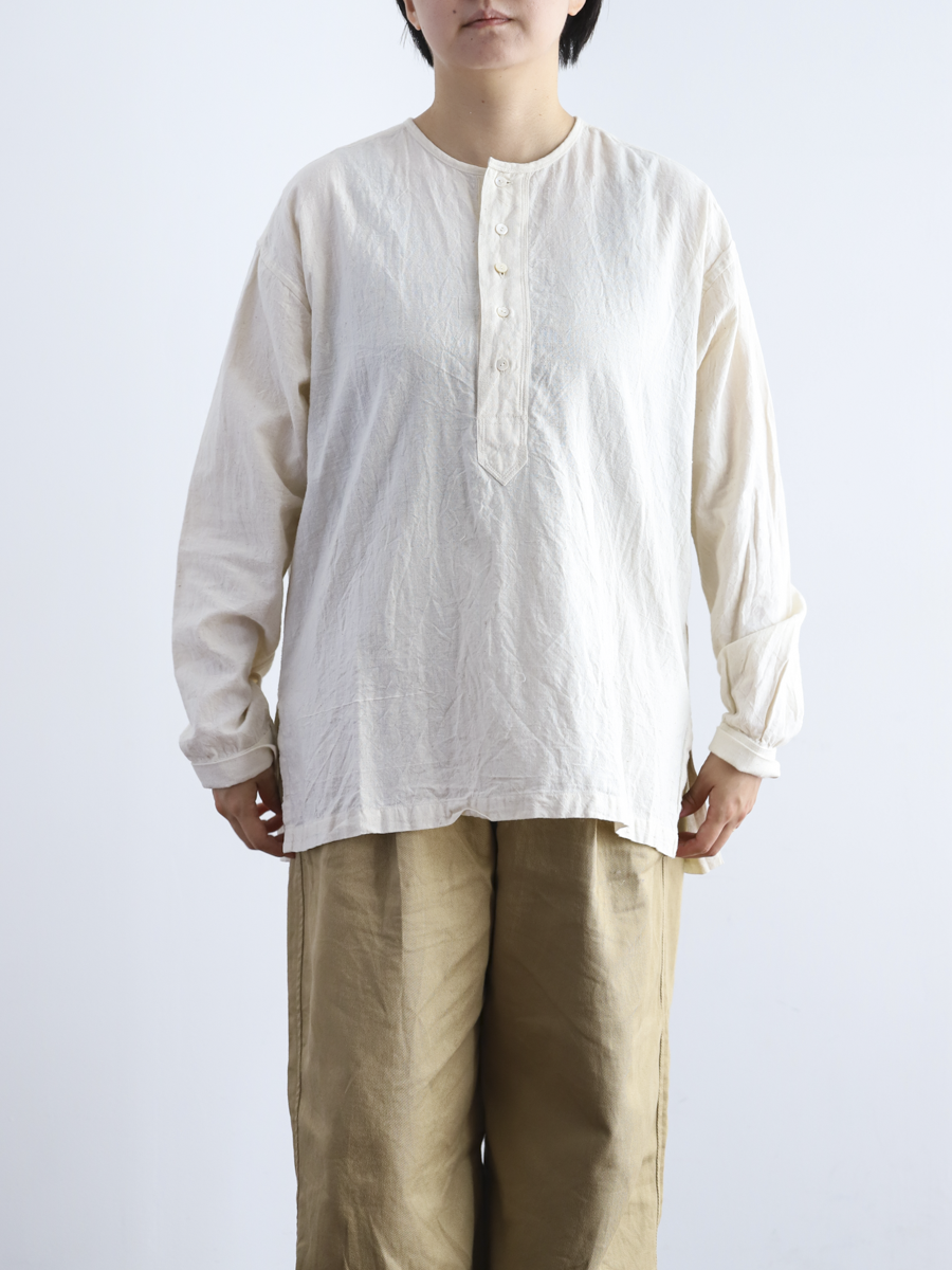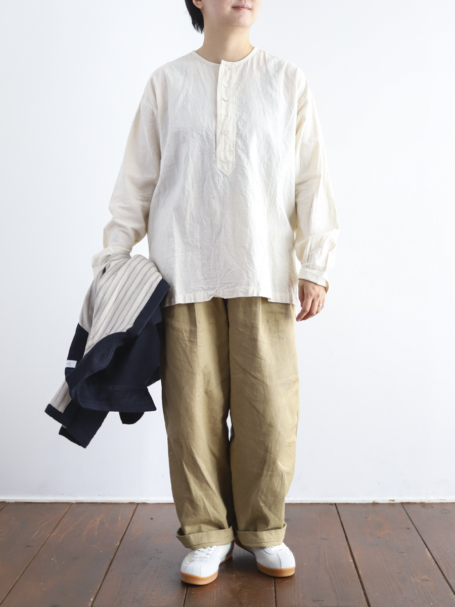 シンプルなヘンリーネックのシャツ。