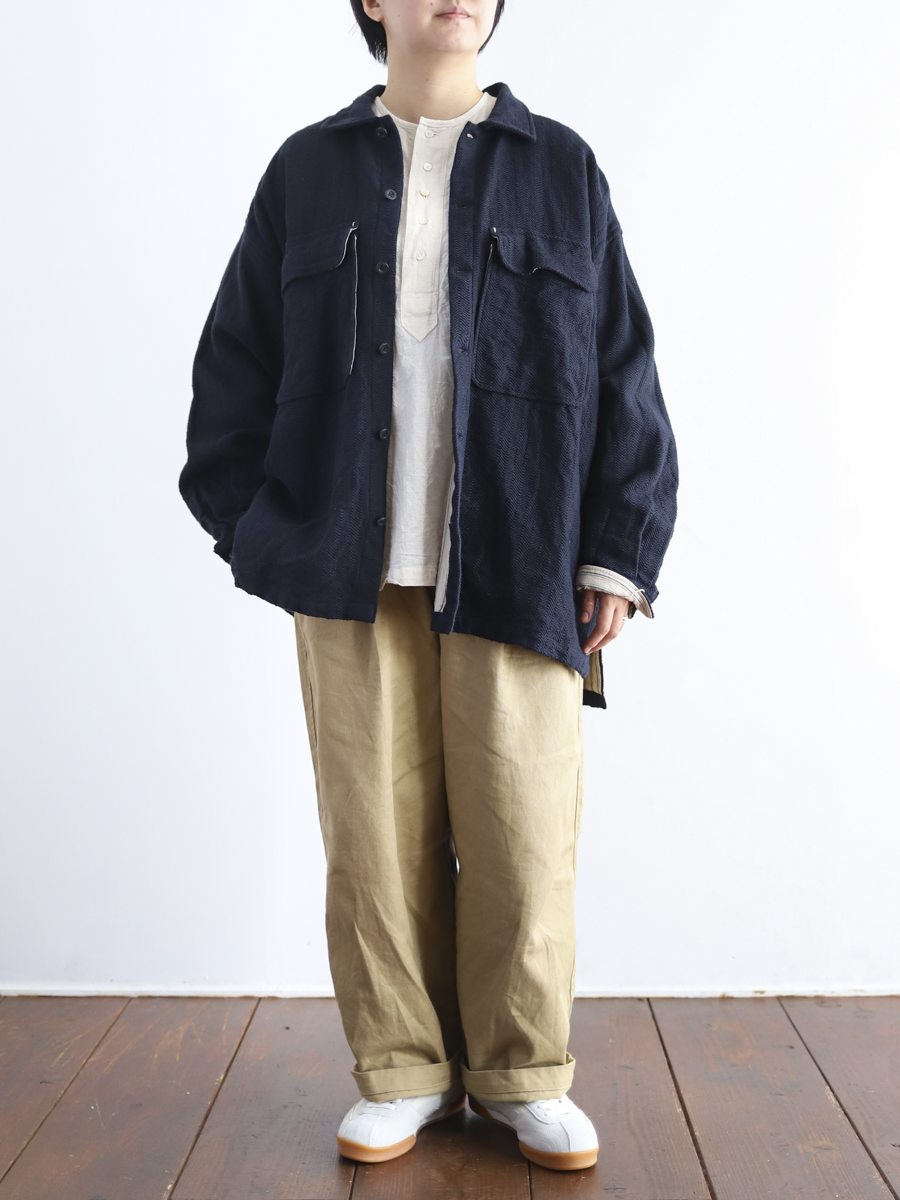 綿の糸を手紡ぎ手織りされた生地は、柔らかく肌馴染みが良いです。