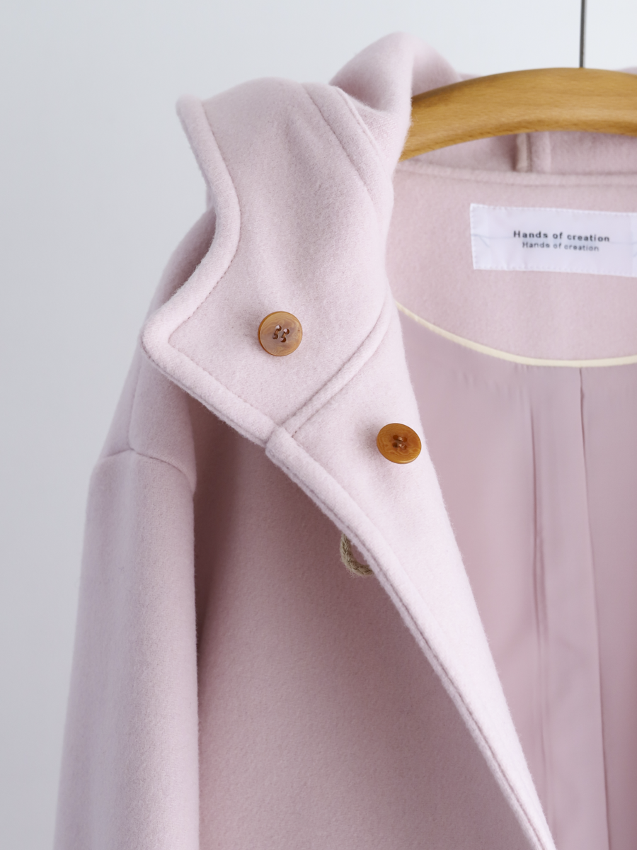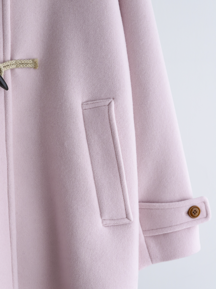 フロントは二箇所のトグルボタンで、両サイドにポケットがついています。