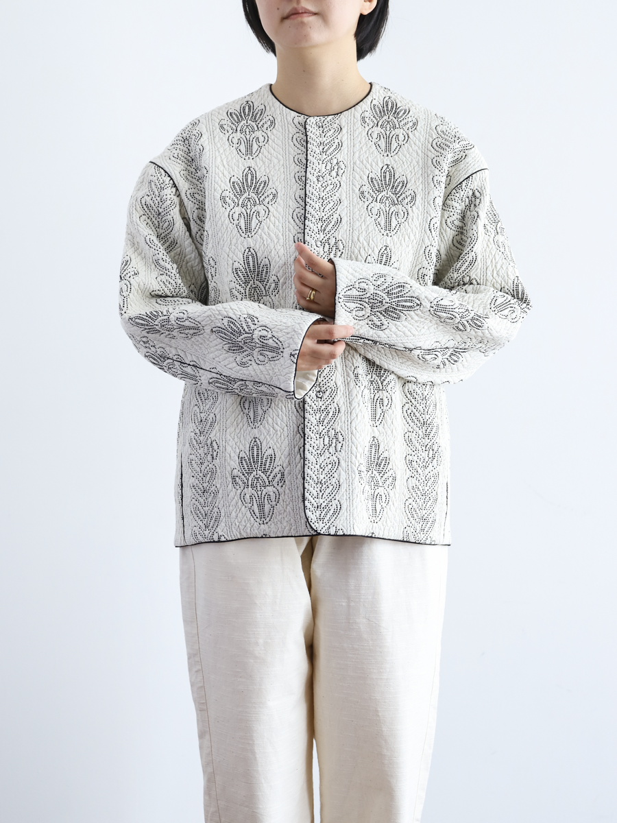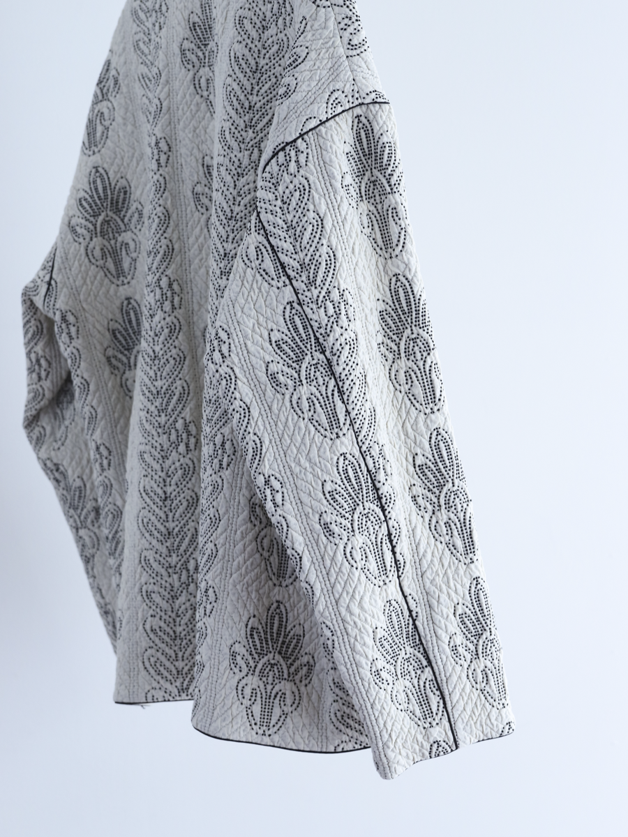キルトを入れながら手で刺繍したような、ふくらみのある生地です。