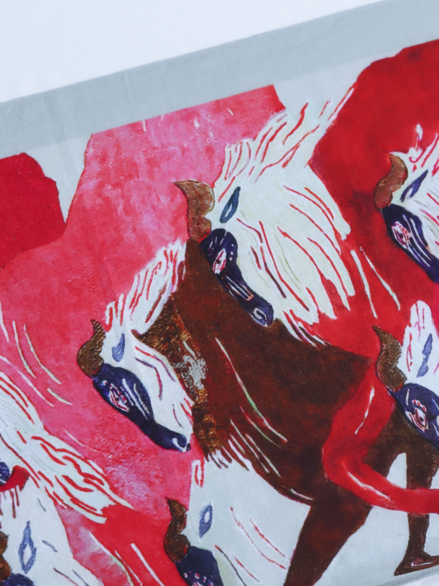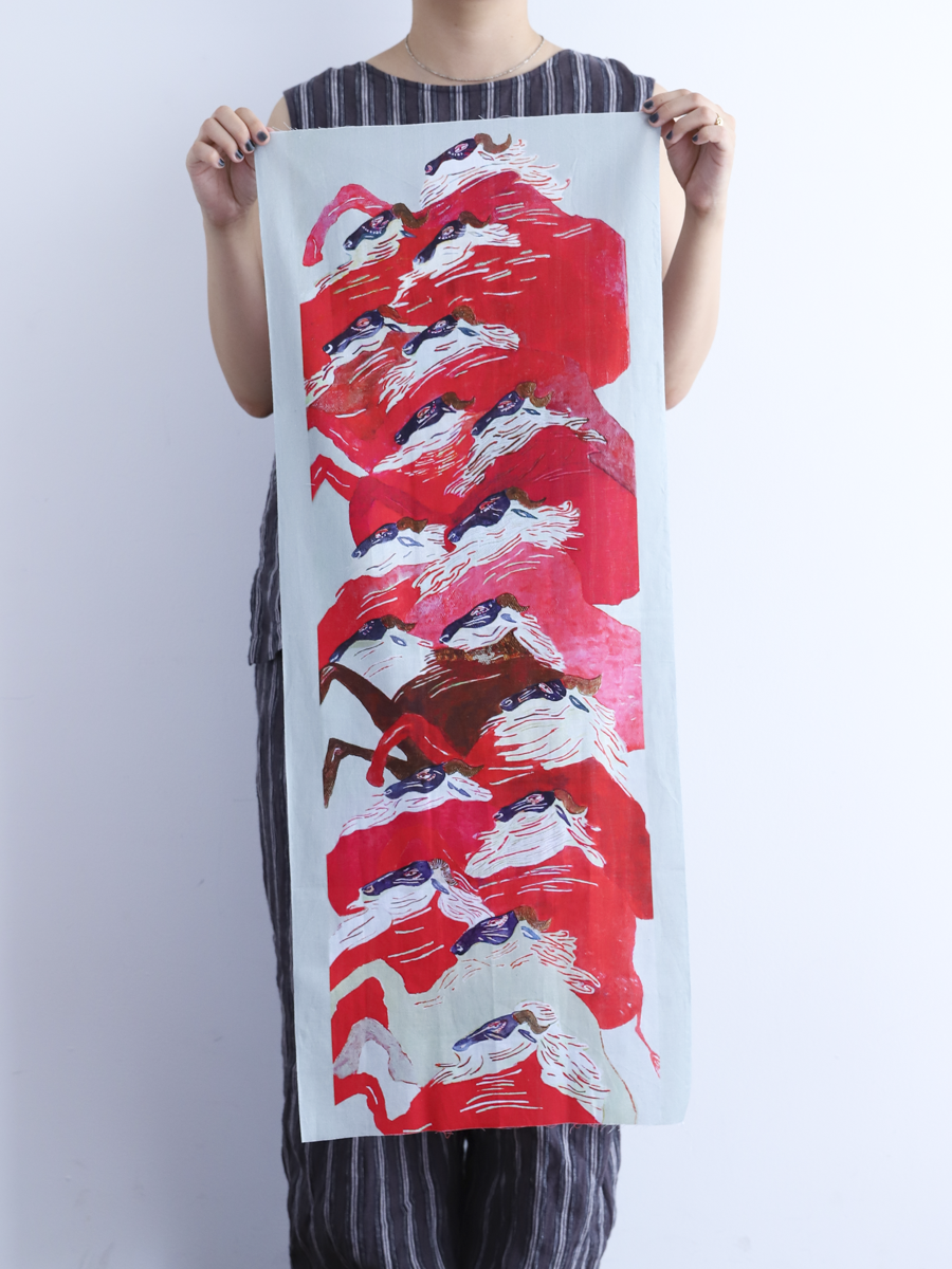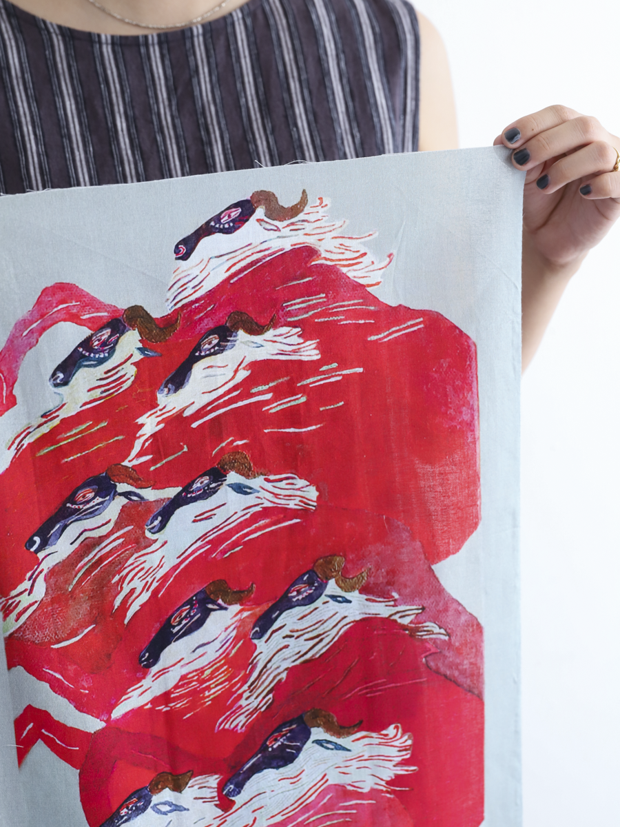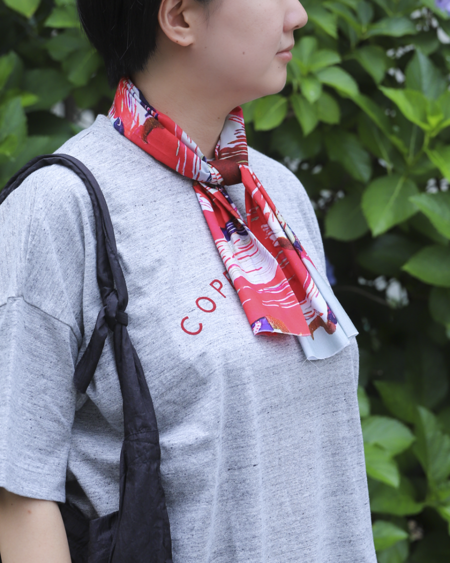 30番糸を織り上げ、シルケット加工を施した"特岡"というなめらかな生地の国産てぬぐいに、名古屋市内のプリント工場でインクジェットプリントを施しています。