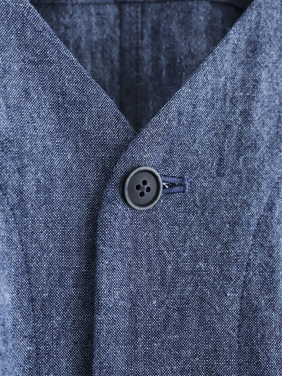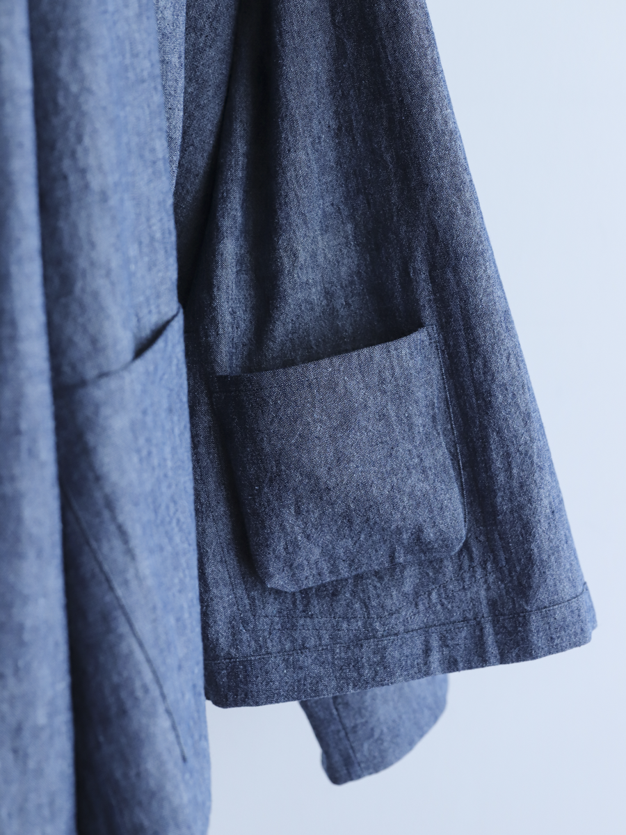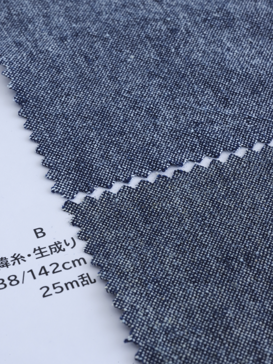 インディゴ染めの経糸にホワイトの緯糸を使用したシャンブレー組織ですが、太番手の糸を使用することで厚みをもたせています。