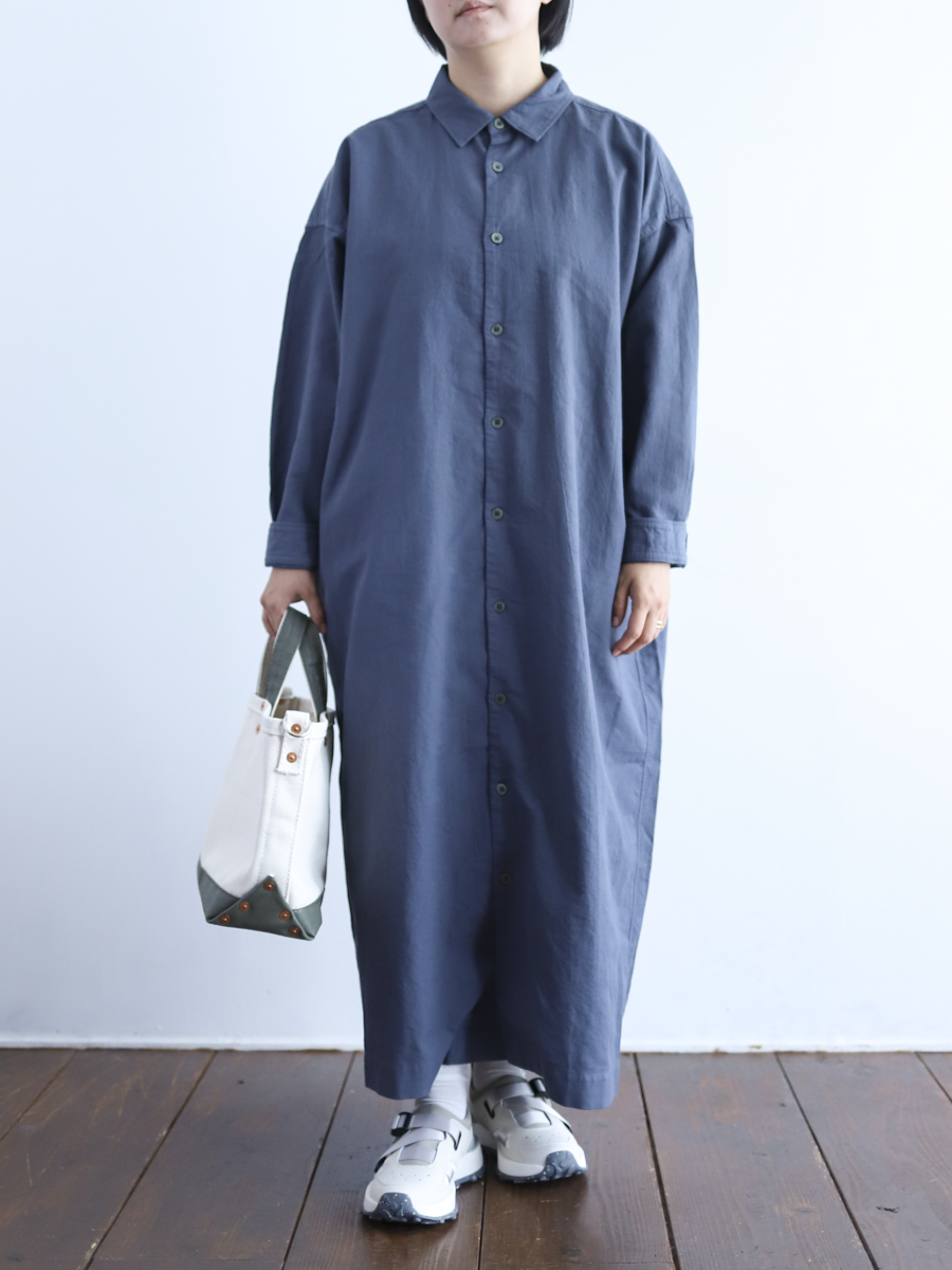 シンプルなデザインですが飽きずに長く着ていただけるシャツワンピース。