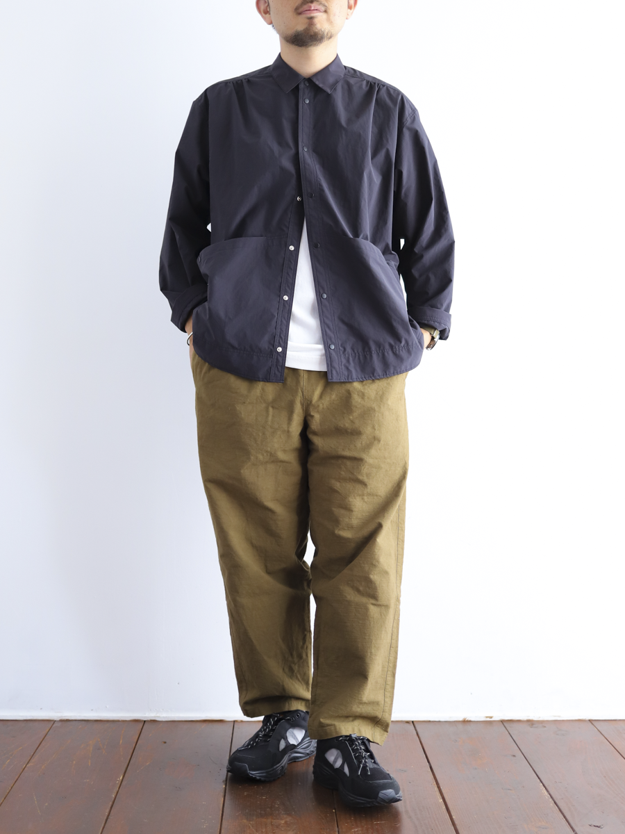 ミニマルなデザインながら、サイドポケットと右後ろパッチポケットで日常使いの機能性も確保。