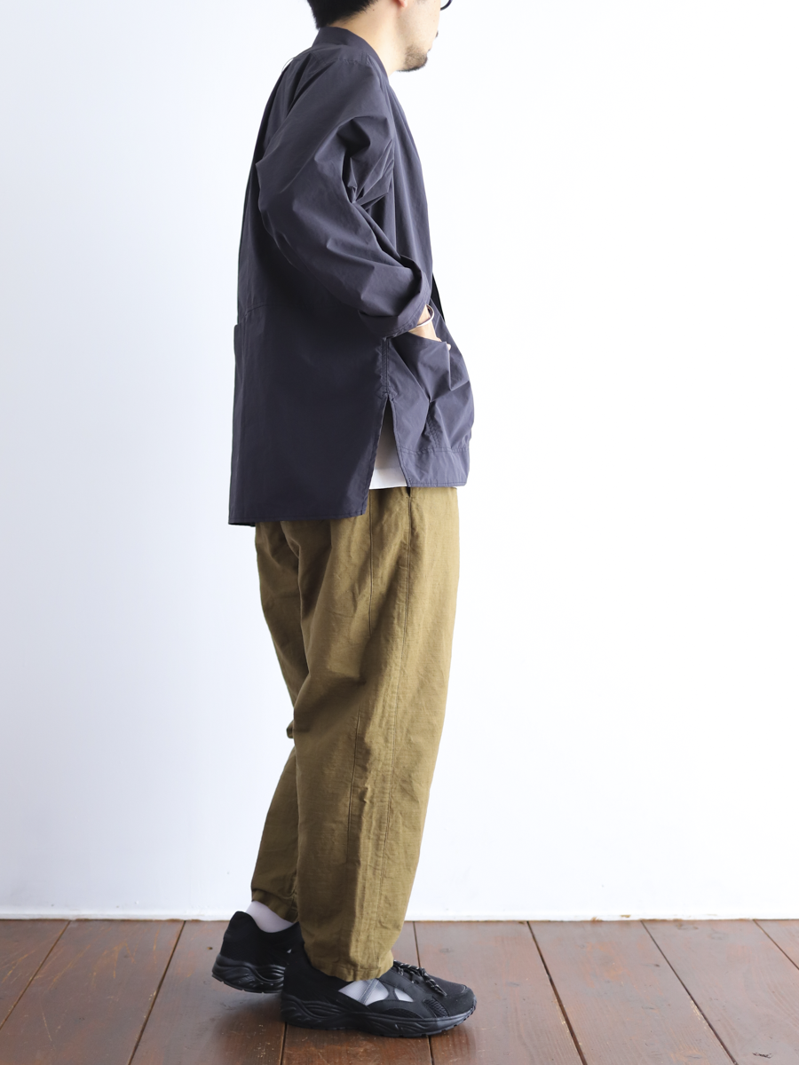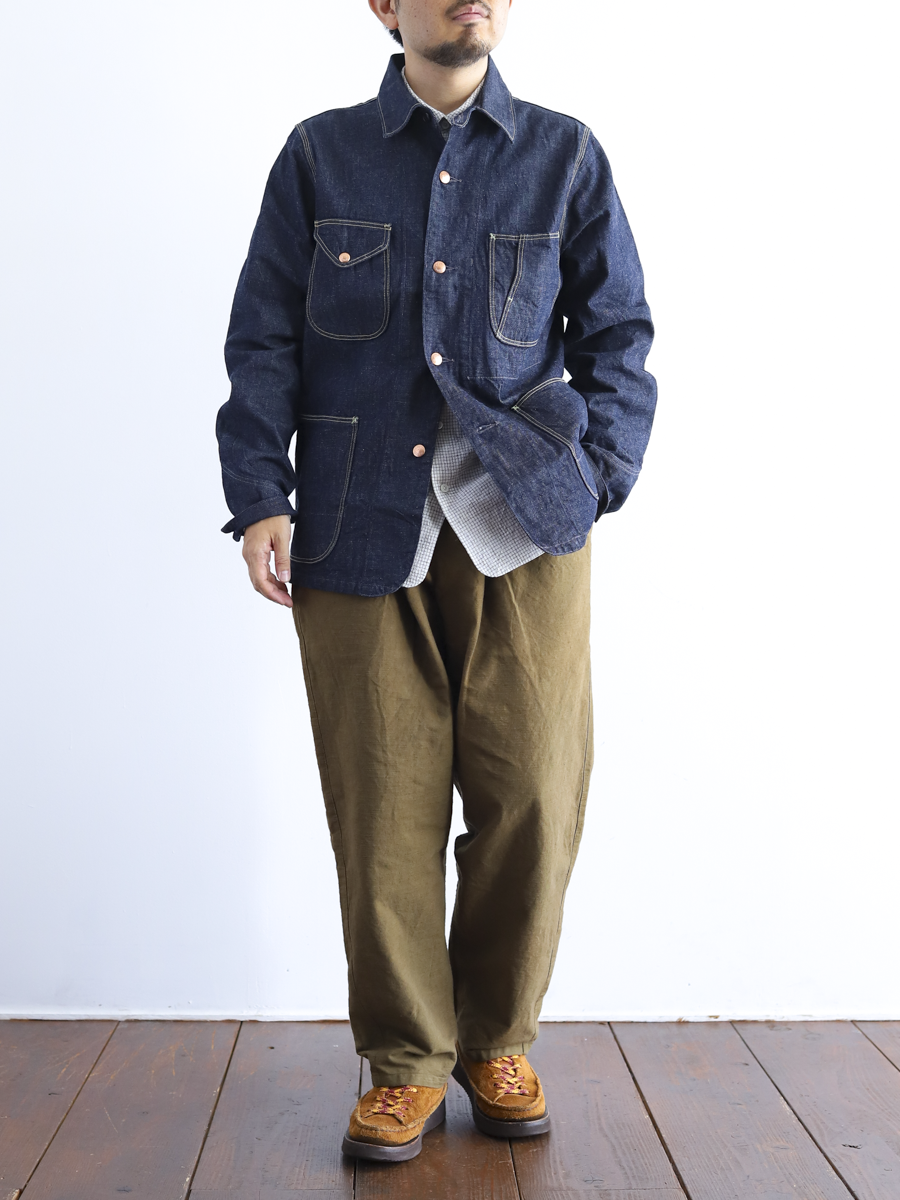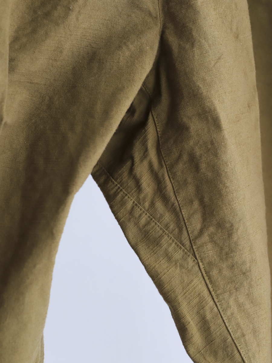 OSOCUの定番人気パンツを日本の伝統色の中から私たちがセレクトした路考茶に染めてもらいました。