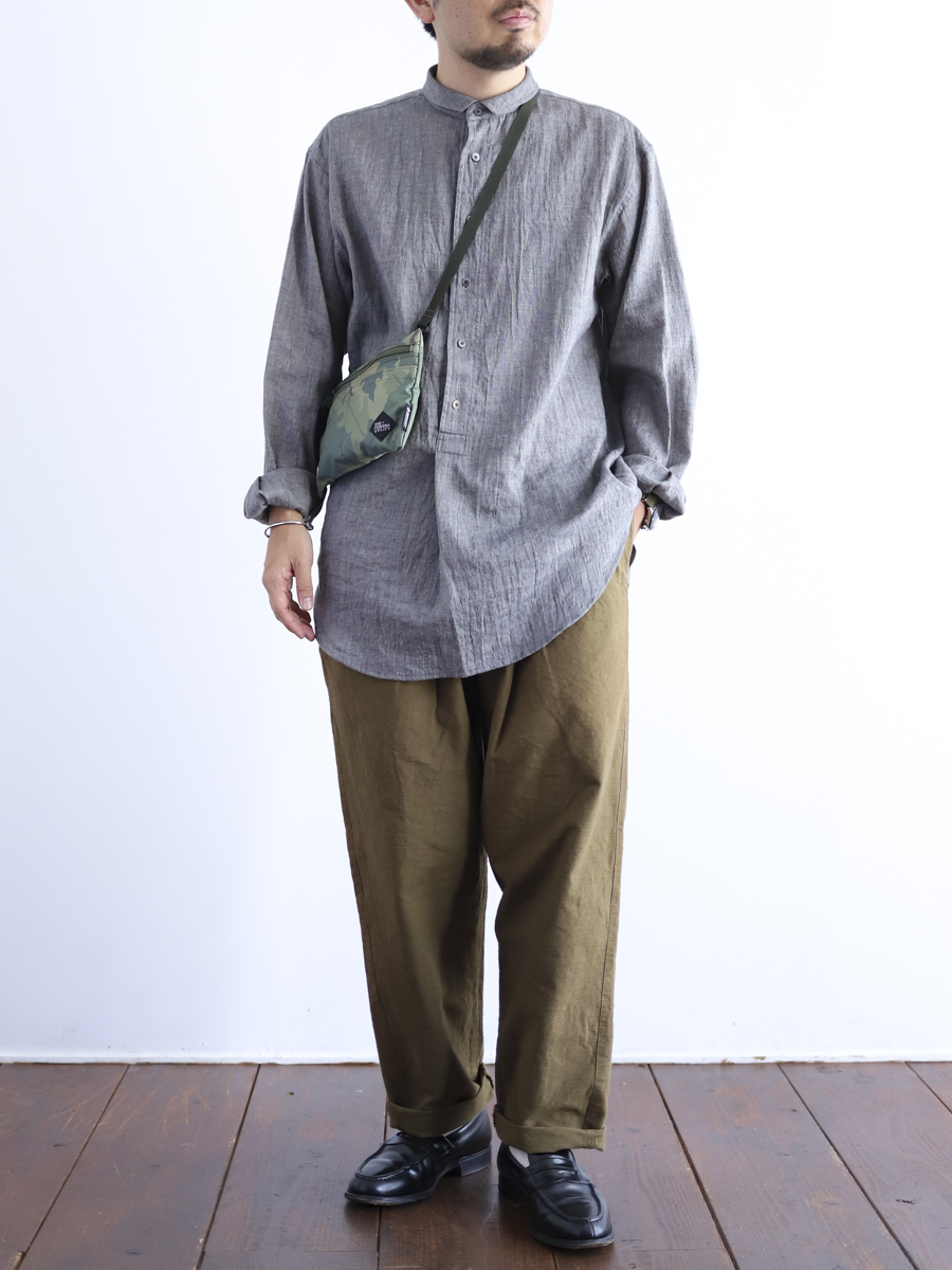 カーキ・オリーブドラブ・ブラウンあたりの色をミックスしたかのような絶妙な色は、程よい季節感もありながらコーディネートに取り入れやすいカラーです。