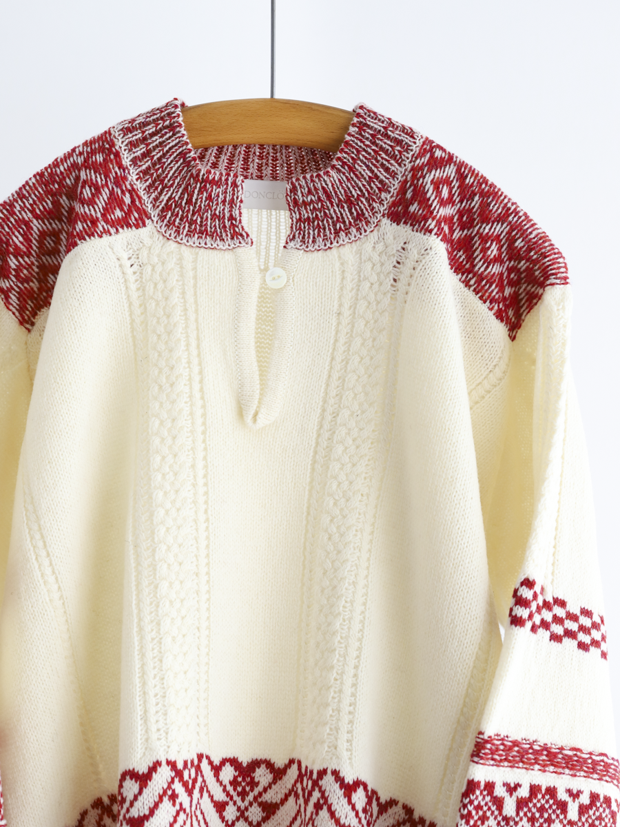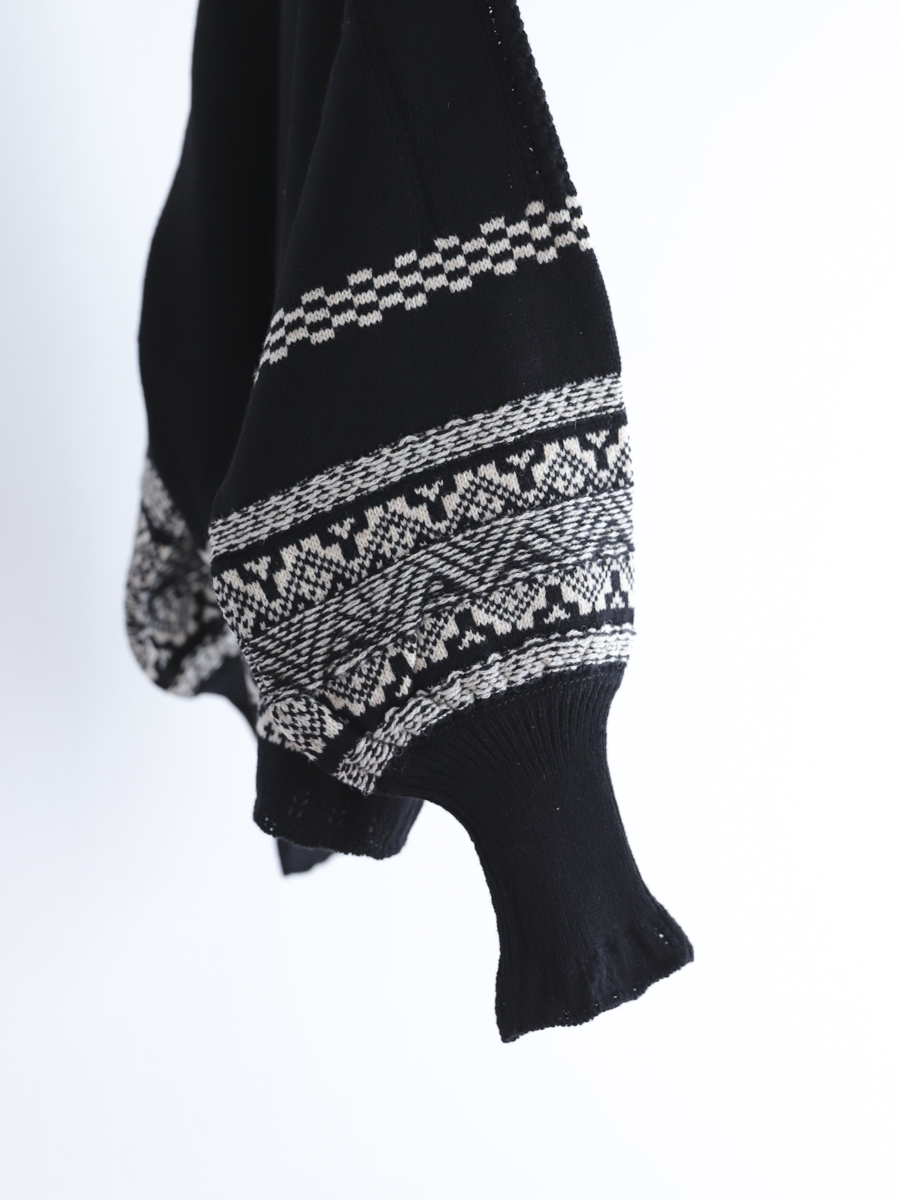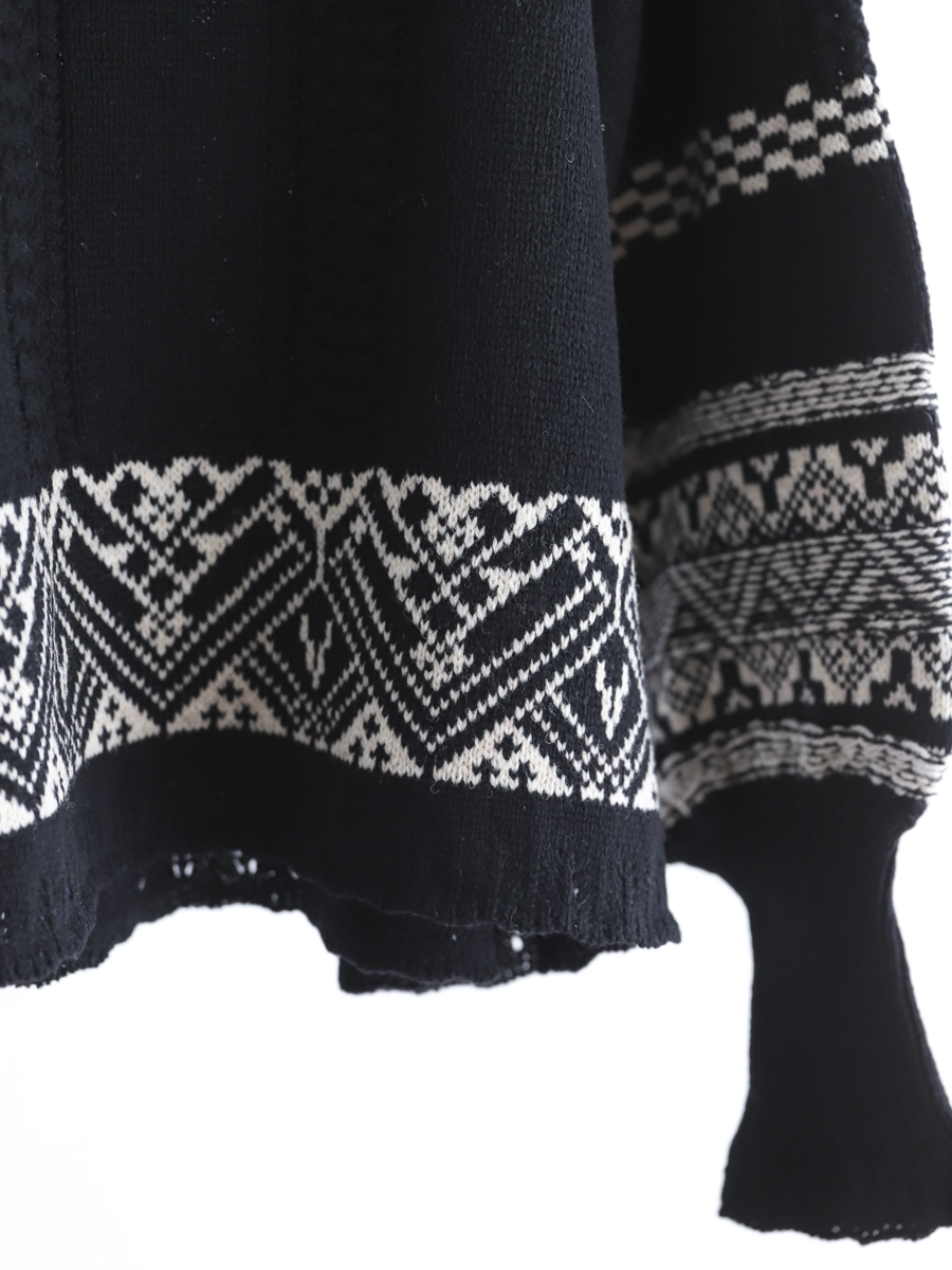 ネックのデザインと袖のボリュームがとてもかわいいニットです。