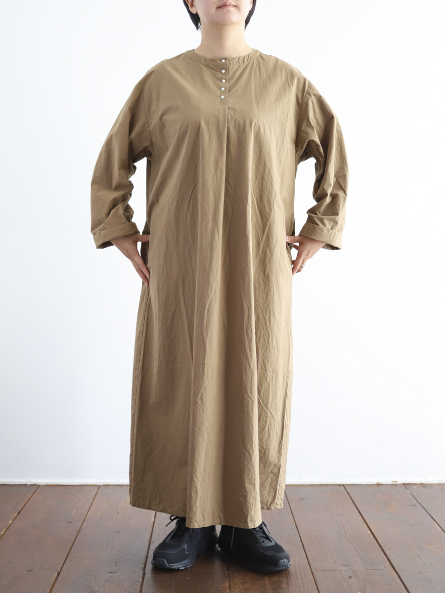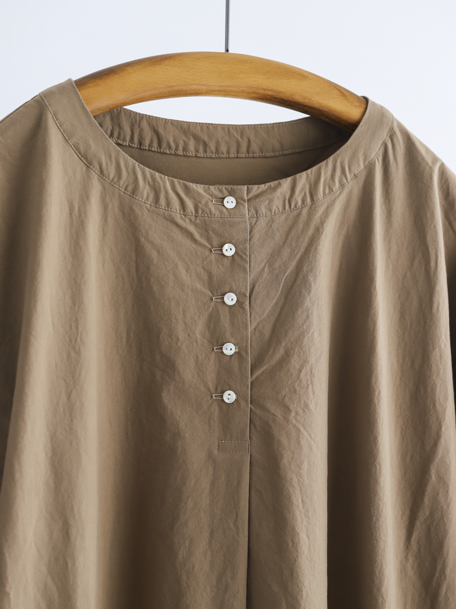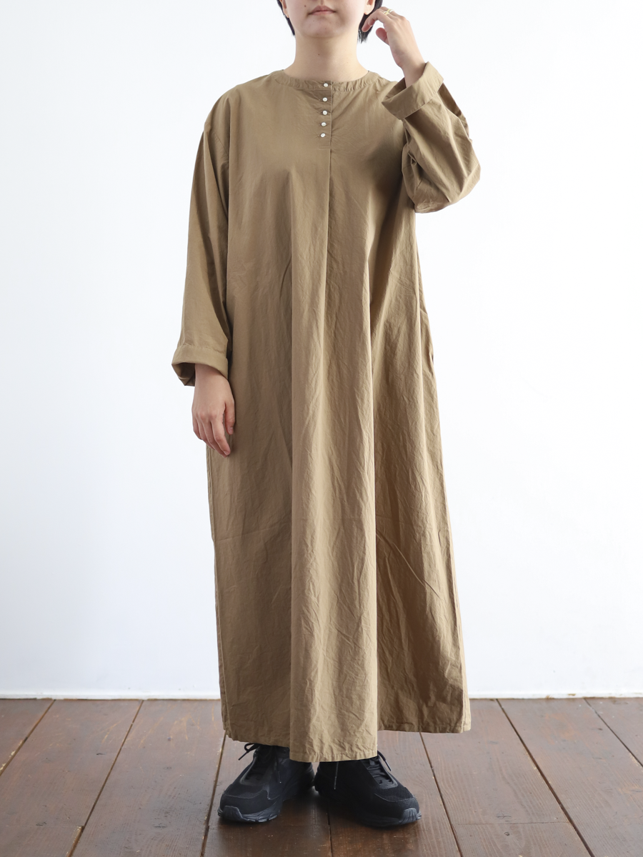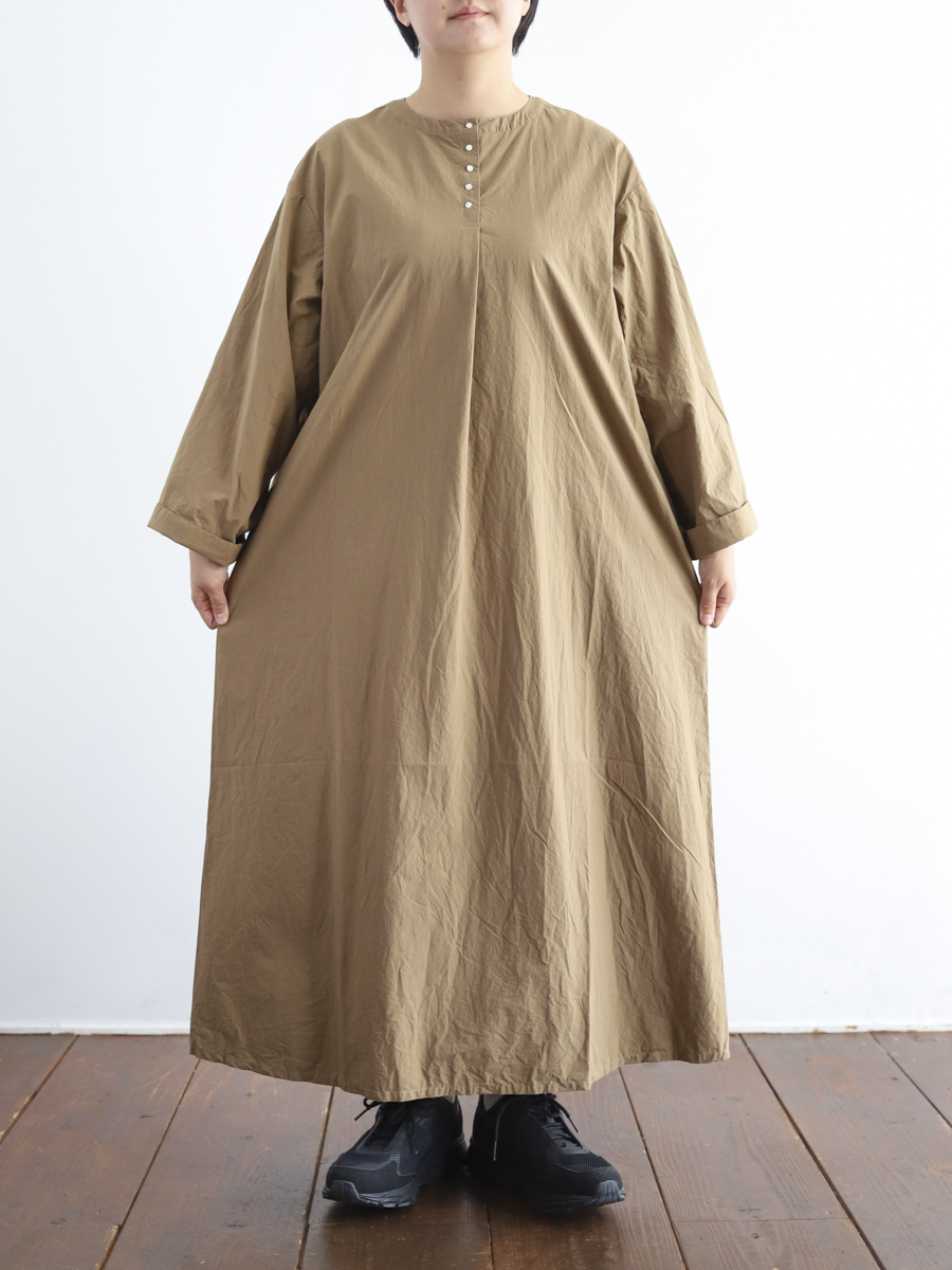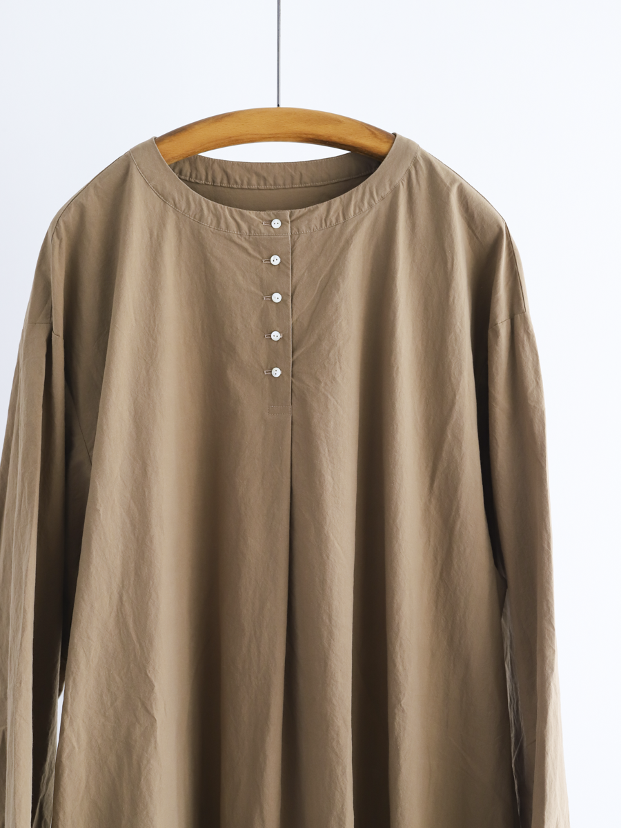 首元に5つのボタンを並べたヘンリーネックのプルオーバーワンピース。