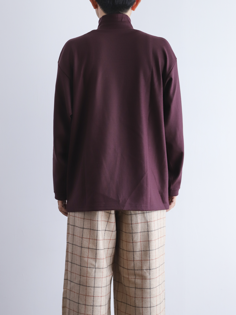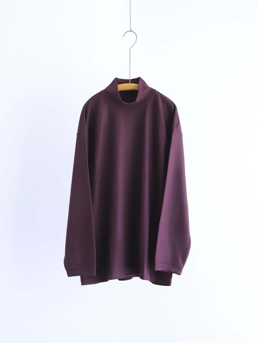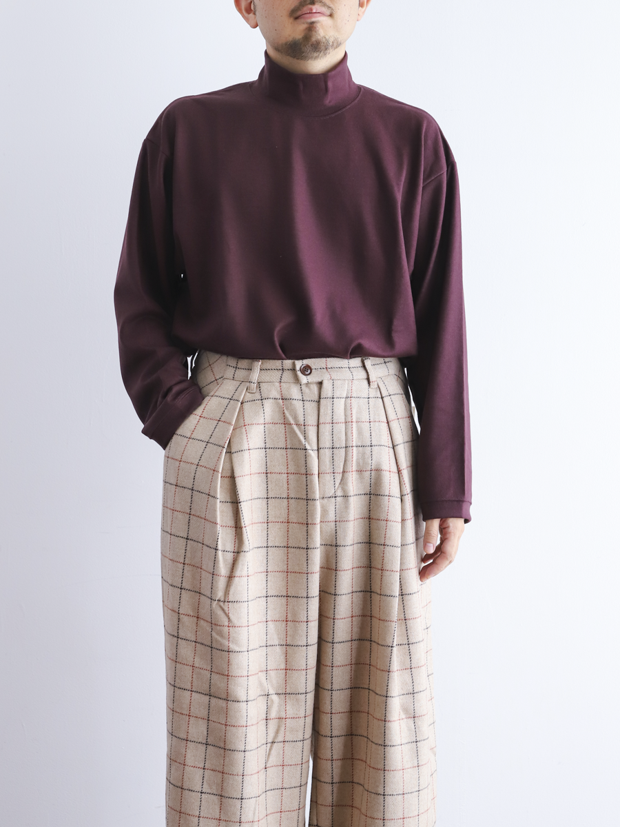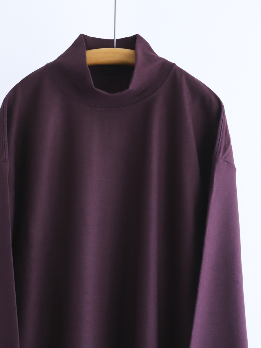 リブ素材で切り替えたハイネックが季節感と上品さをプラスしてくれるカットソー。