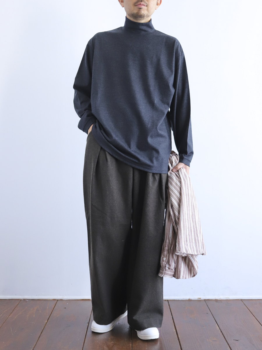 肩を落とし、身幅をたっぷりと設定したEEL得意のリラックスシルエット。
