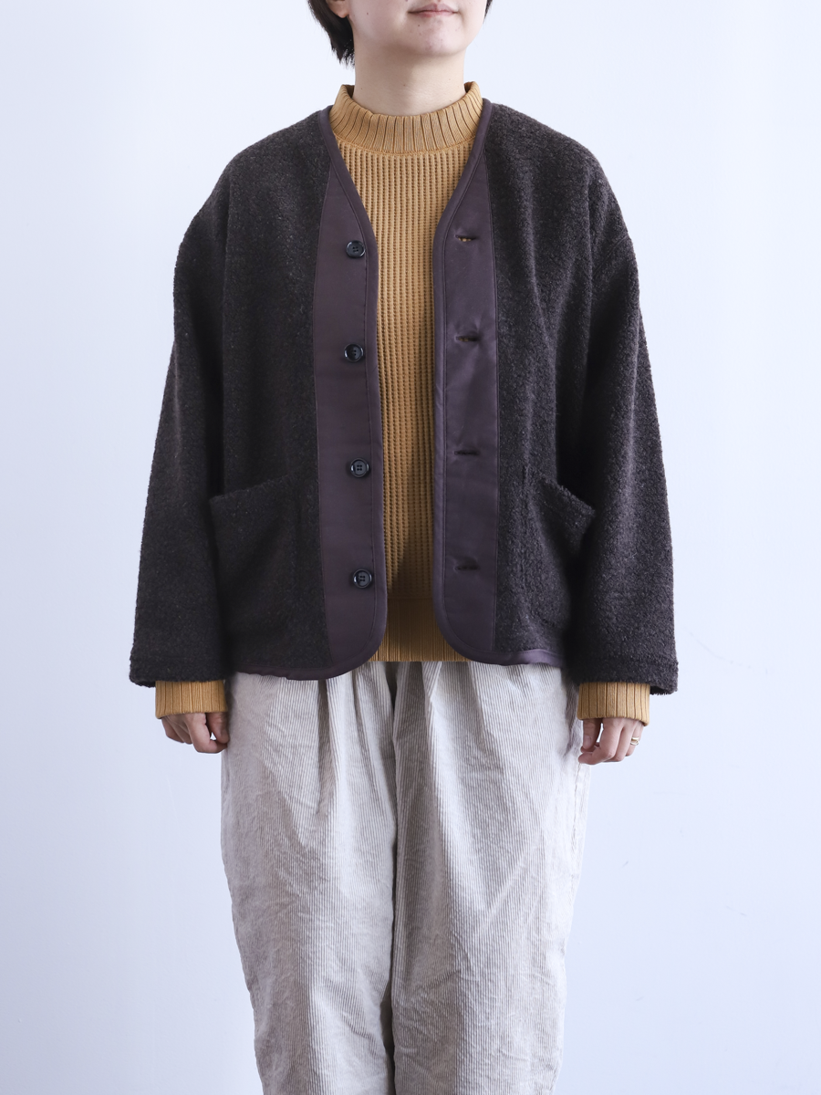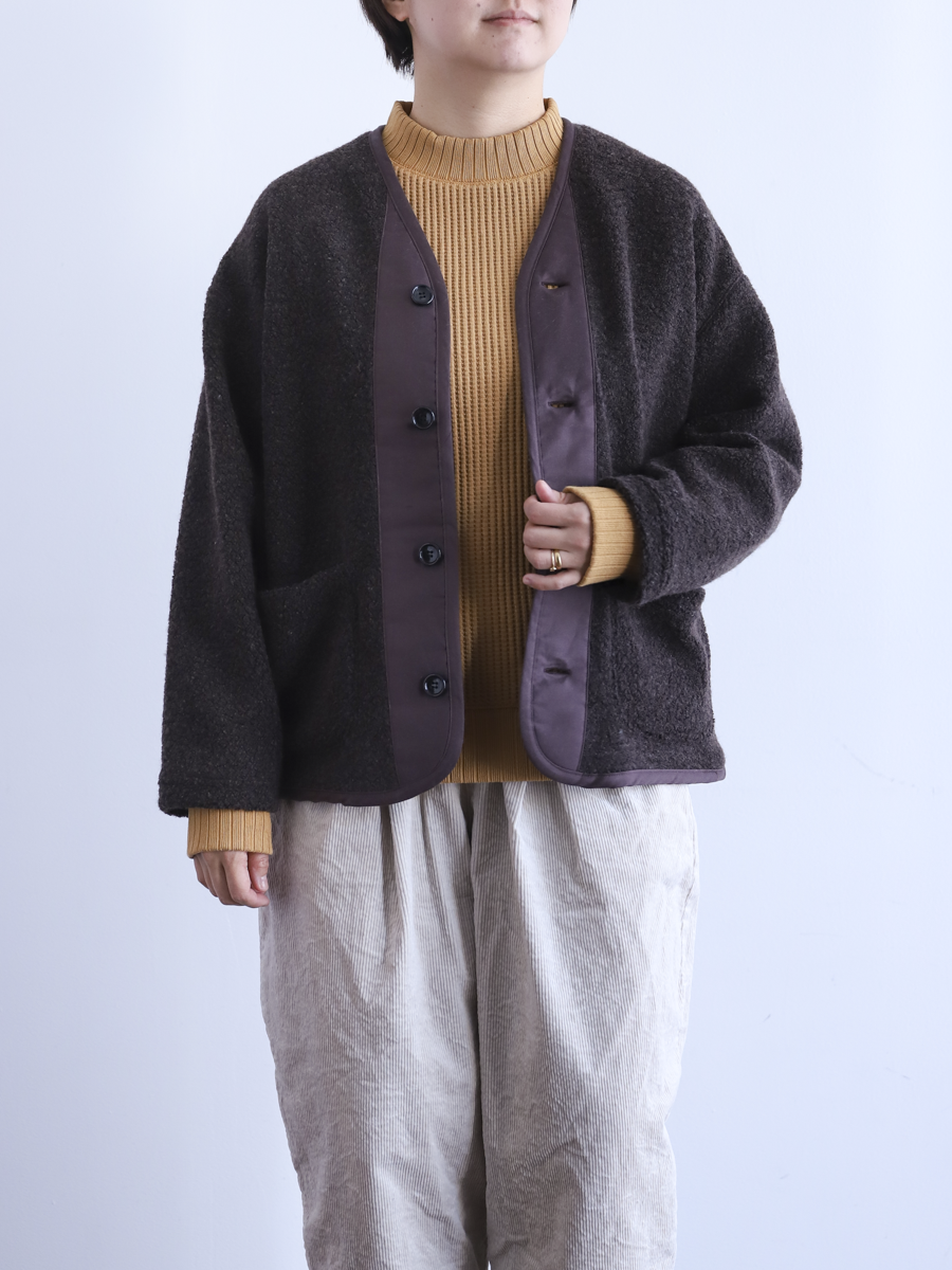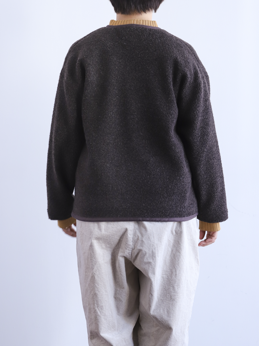 軽くて暖かく、室内で1番外に着るアイテムとしても、屋外でアウターの中に