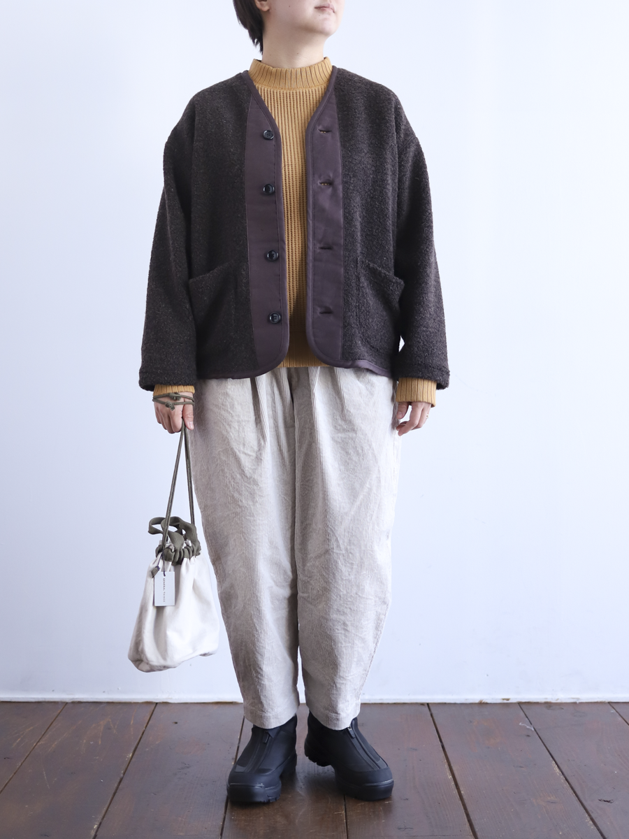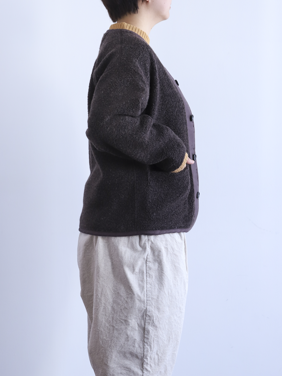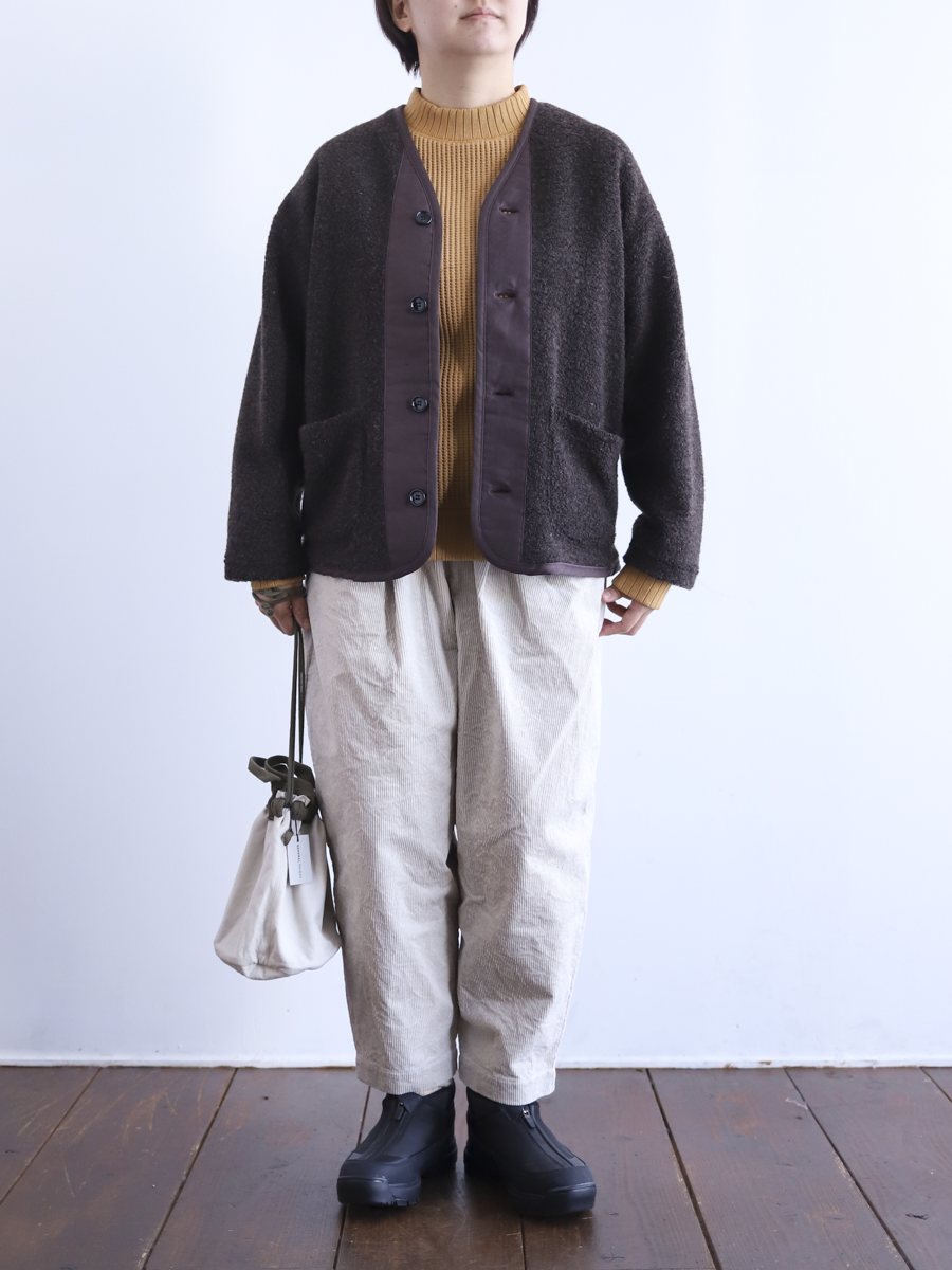 軽くて暖かく、室内で1番外に着るアイテムとしても、屋外でアウターの中に